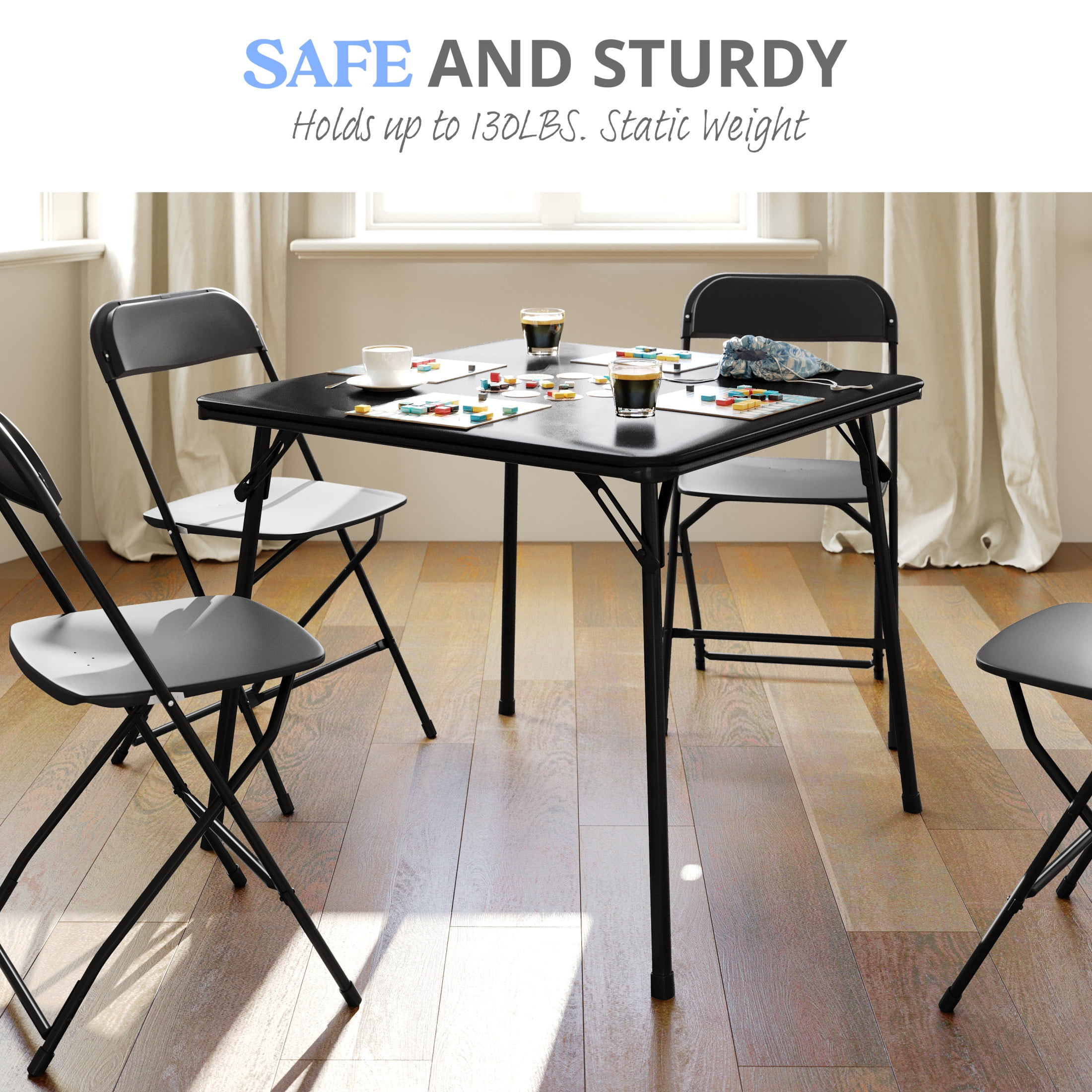 Emma + Oliver Black Foldable Card Table with Vinyl Table Top – Game Table – Portable Table