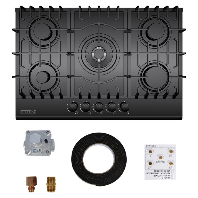 The Empava 30-inch gas cooktops with the CSA certified is a perfect combination of style and practicality. Constructed with tempered glass to prevent dents and scratches for long lasting use in your busy kitchen. The gas cooktops feature commercial-grade components (1x 13000-BTU burner, 1x 10200-BTU burner, 2x 6000-BTU burners and 1x 3800-BTU burner), the power burner designed to reach maximum temperatures quickly as well as a simmer burner for more delicate, controlled heat. The metal constructed knobs and the heavy-duty cast iron grates can be cleaned in the dishwasher. During the past years, gas cooktops by Empava appliances have been a very popular choice for kitchen upgrades and new builds, allowing you to cook restaurant quality meals from the comfort of your own home.