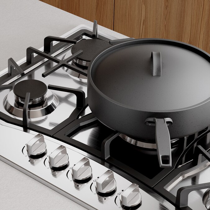 - Continuous, edge-to-edge grates are dishwasher safe for easier clean-up, let you move heavy pots and pans across the cooktop without lifting