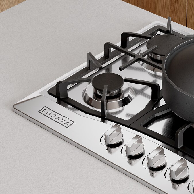 The Empava 30-inch gas cooktops with the CSA certified is a perfect combination of style and practicality. Constructed with 18-gauge stainless steel for exceptional resistance to corrosion and rust. Handcrafted brushed satin finish to prevent dents and scratches for long lasting use in your busy kitchen. The gas cooktops feature commercial-grade components (1x 12000-BTU burner, 1x 10200-BTU burner, 2x 6000-BTU burners and 1x 3400-BTU burner), the power burner designed to reach maximum temperatures quickly as well as a simmer burner for more delicate, controlled heat. The metal constructed knobs and the heavy-duty cast iron grates can be cleaned in the dishwasher. During the past years, 30-inch gas cooktops by Empava appliances have been a very popular choice for kitchen upgrades and new builds, allowing you to cook restaurant quality meals from the comfort of your own home.