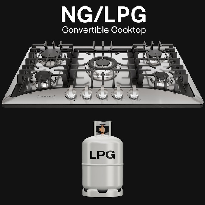 - Pre-installed for natural gas, can be converted to liquid propane gas use (LPG conversion kit included)