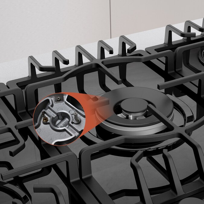 - Continuous, edge-to-edge grates are dishwasher safe for easier clean-up, let you move heavy pots and pans across the cooktop without lifting