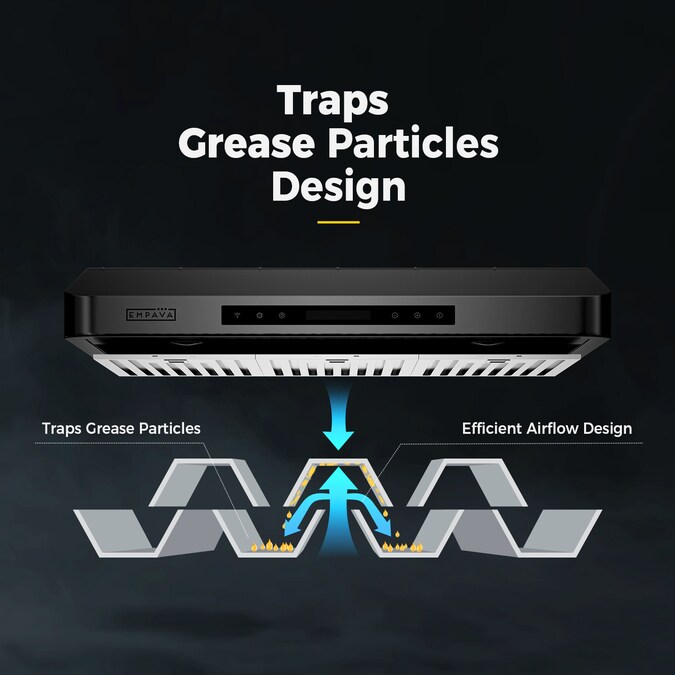 The 36-in 500-CFM ducted under cabinet range hood with the USA and Canada certified is a perfect combination of style and practicality. The soft-touch controls and an LCD screen design creates A focal point with A distinctive modern look. The ultra-quiet dual motors do an incredible job at quickly remove smoke and other cooking odors from the air. Come with a gently rounded corners design, creates a focal point with a distinctive modern look. Removable, reusable, dishwasher-safe stainless-steel filter for easy cleaning and maintenance. Two bright LEDs shine light on your stove top for better cooking visibility. The ventilation hood can be set to switch off automatically after 1 or 15 minutes. During the past years, Empava range hoods have been a very popular choice for kitchen upgrades and new builds.