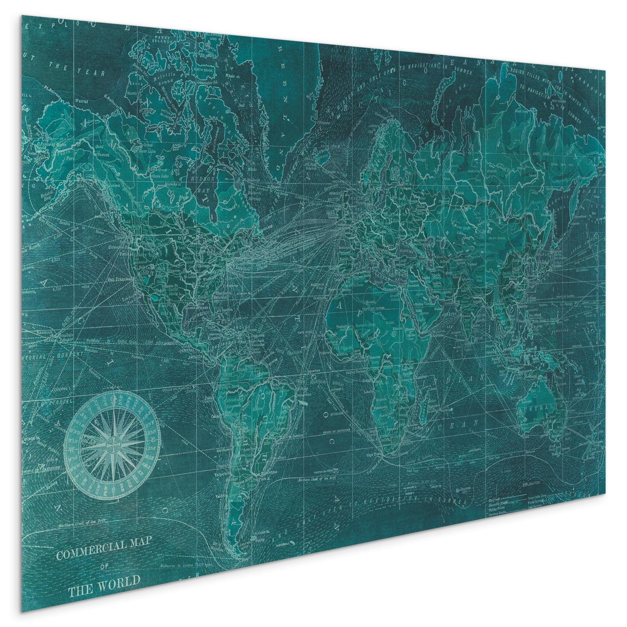 Empire Art Direct “Azure World Map” Frameless Free Floating Tempered Glass Panel Graphic Wall Art