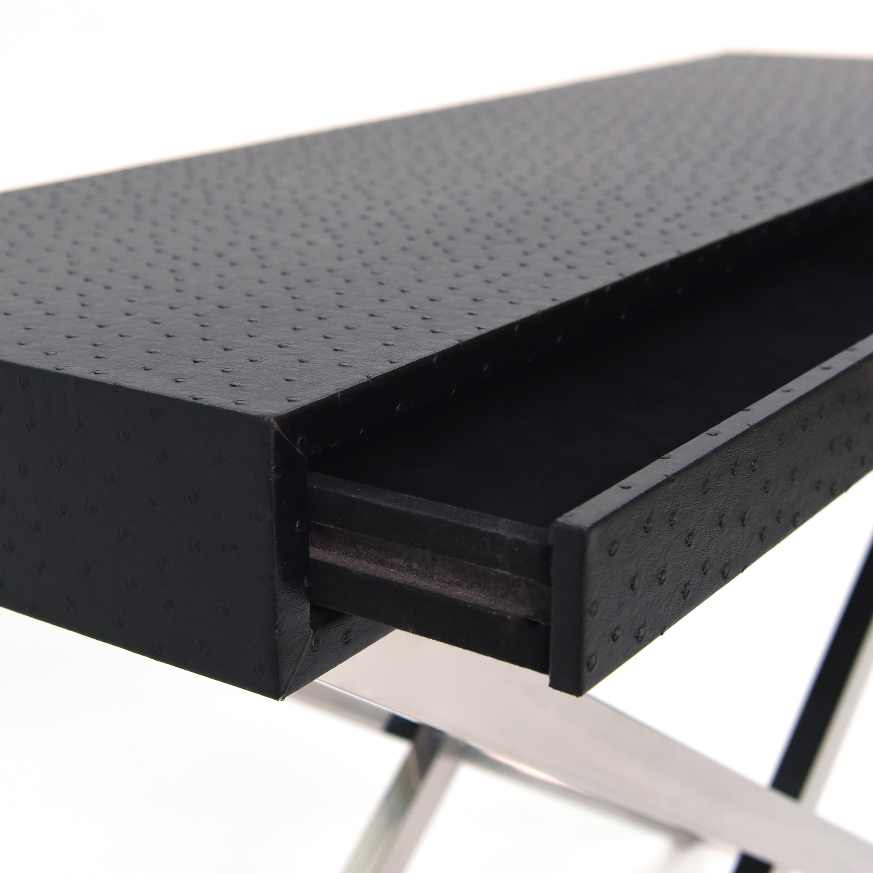 Empire Art Direct Black Ostrich Leather Side Tray Console Table – 43″ x 14″ x 32″