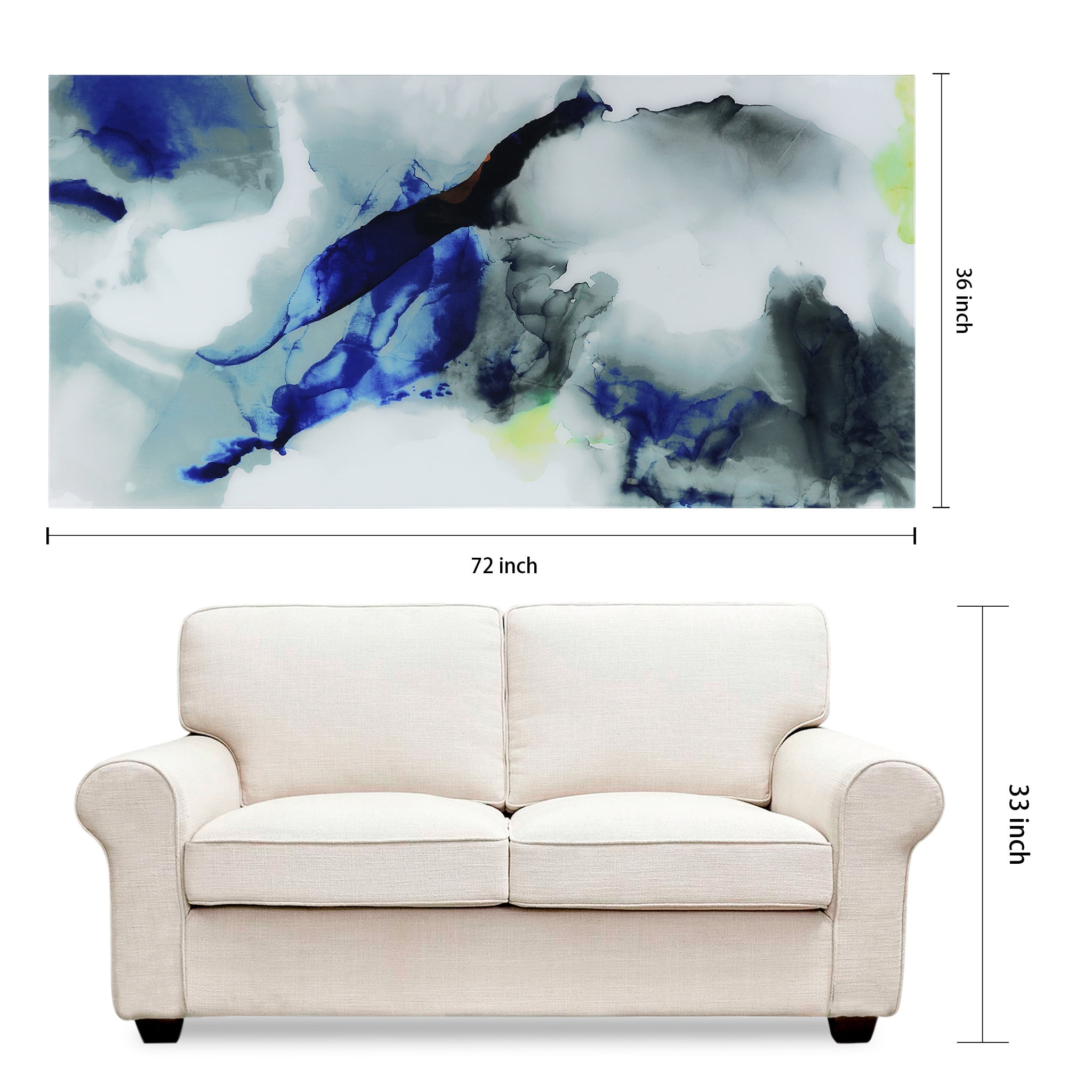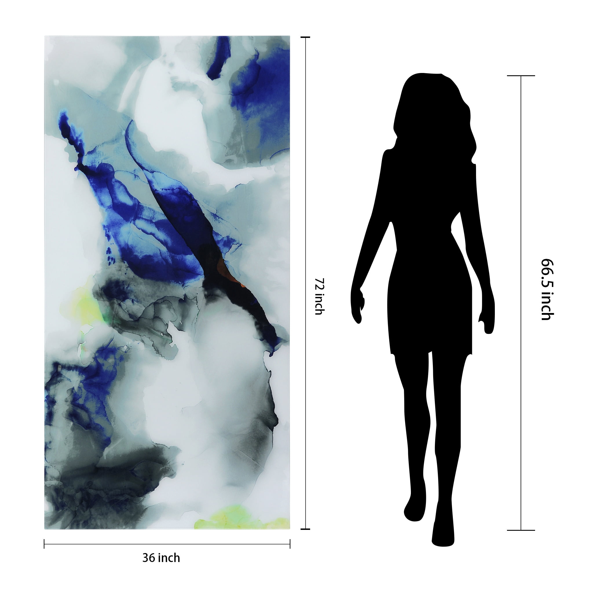 Empire Art Direct Blue Splash Frameless Free Floating Tempered Glass Panel Graphic Wall Art, 72″ x 36″, Ready to Hang