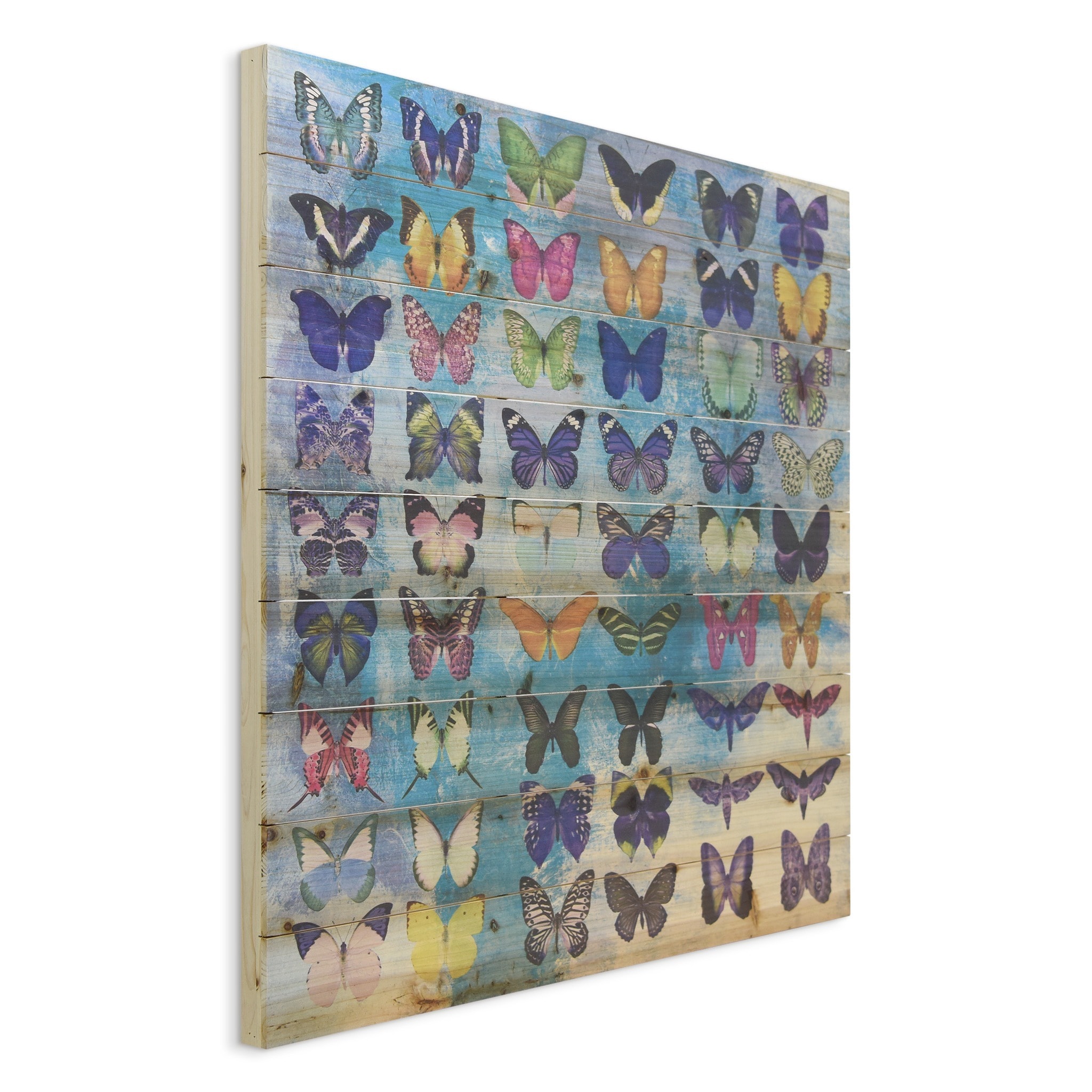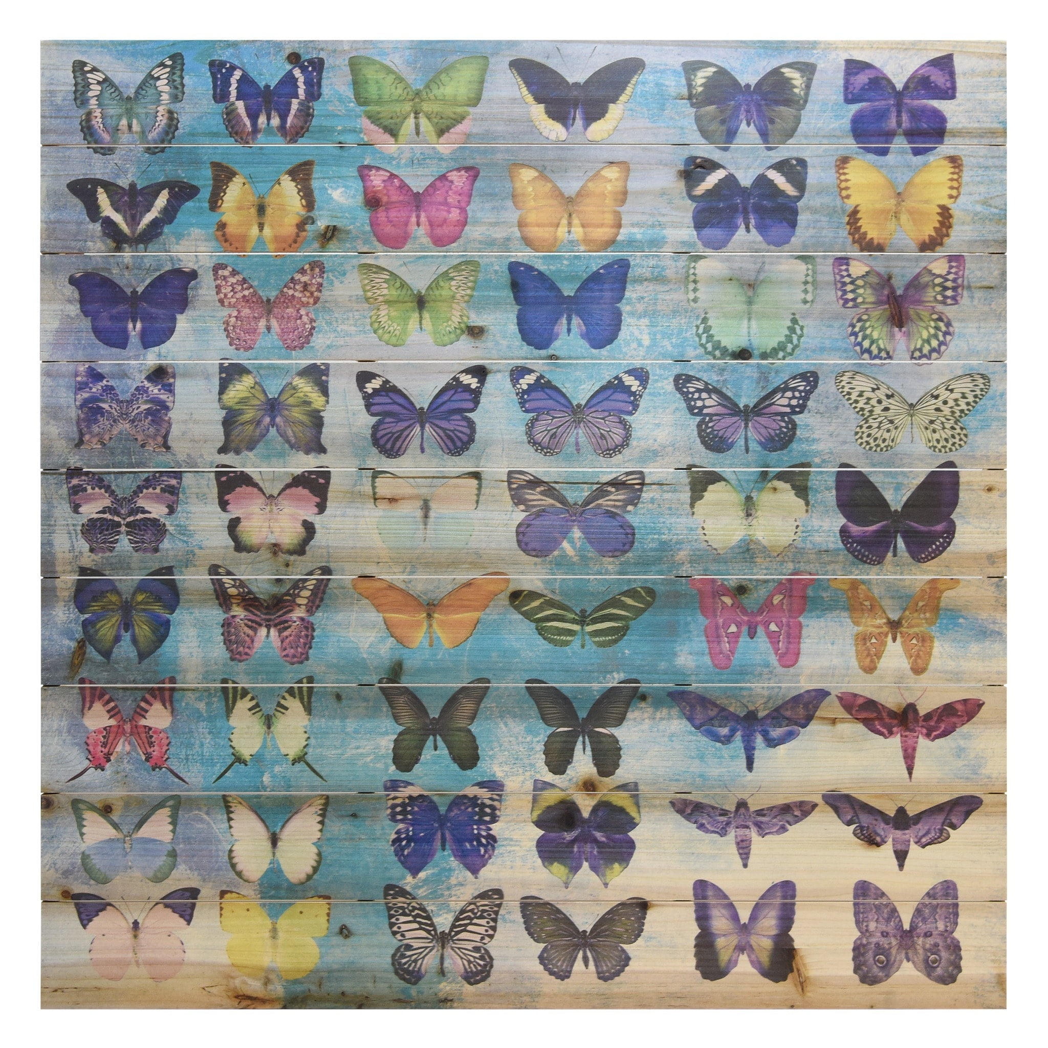 Made of real dried-out fir wood Fine Art Giclee Printed On Solid Fir Wood Planks Comes ready to hang on wall Beautiful insects wall art with several colorful butterflies