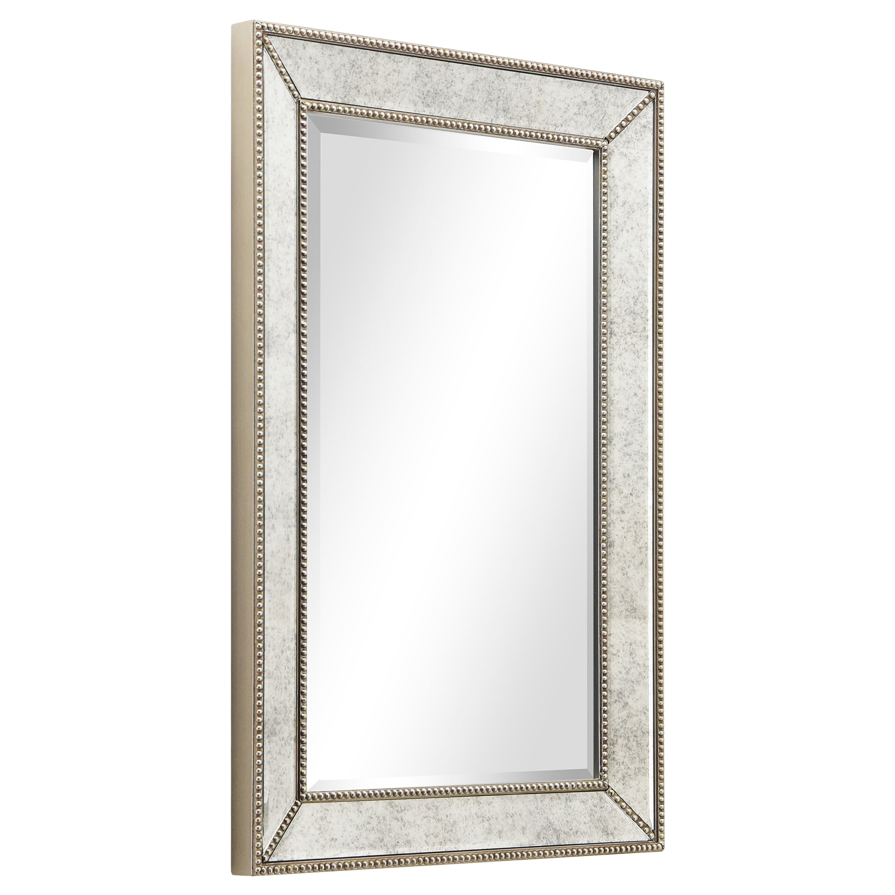 Beveled Mirror Beveled antique mirror with silver beads and champagne finish over solid wood frame Indoor use only Mirror can be displayed horizontally or vertically to fit your design needs Solid wood frame covered with beveled antique mirror panels, Bathroom, Vanity, Bedroom Mirror,1″-beveled center mirror
