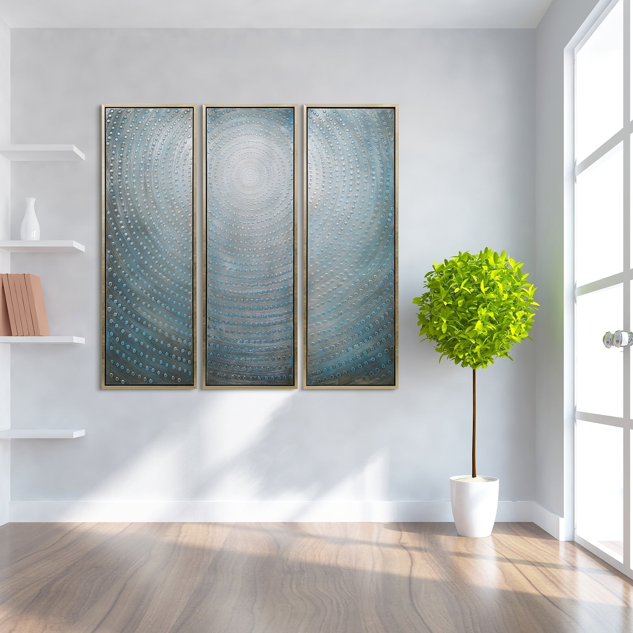 Empire Art Direct Concentric Textured Metallic Hand Painted Triptych Wall Art, 60″ x 20″ x 1.5″, Ready to Hang