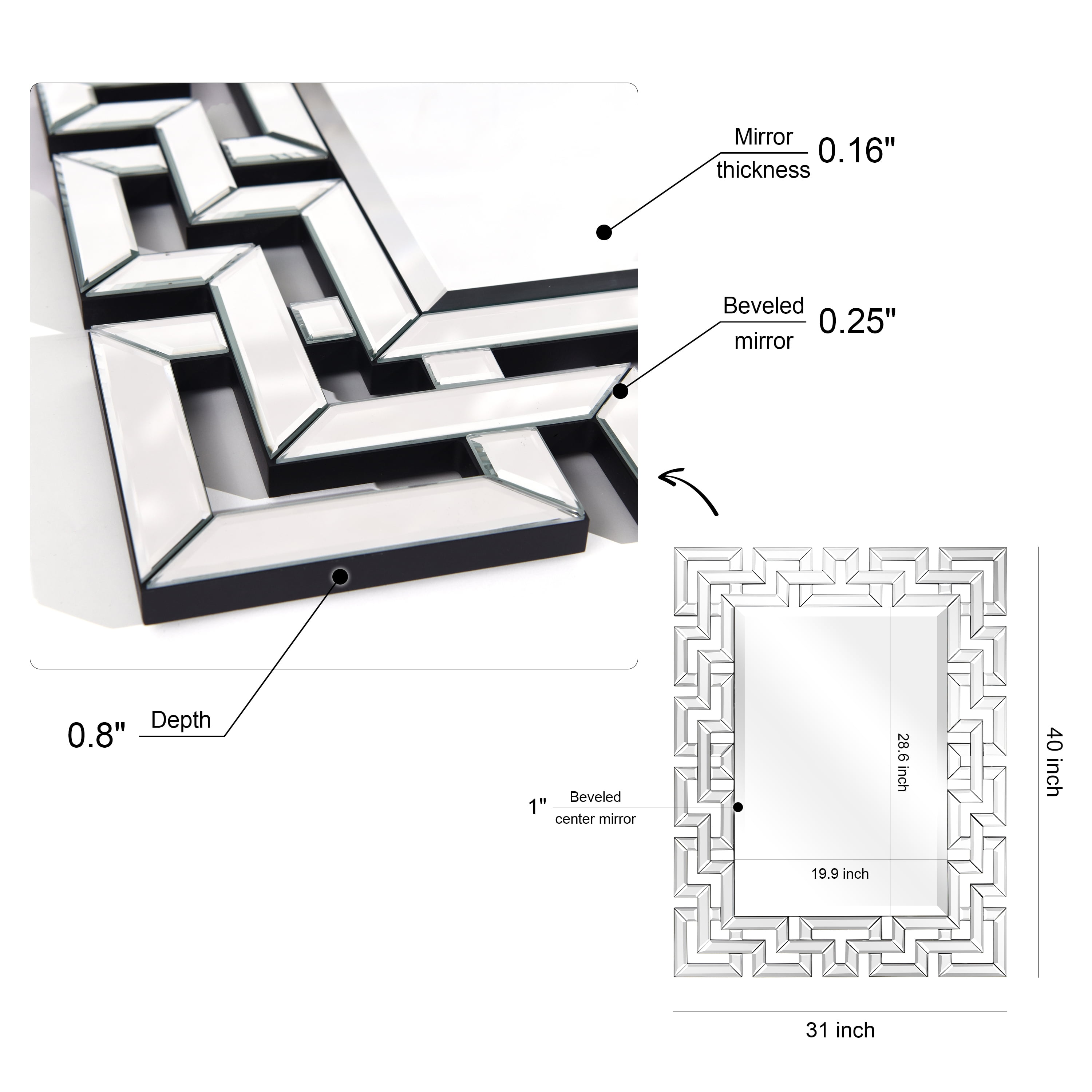 Empire Art Direct Elegant Beveled Geometry Decorative Wall Mirror, 31″ x 40″, Ready to Hang