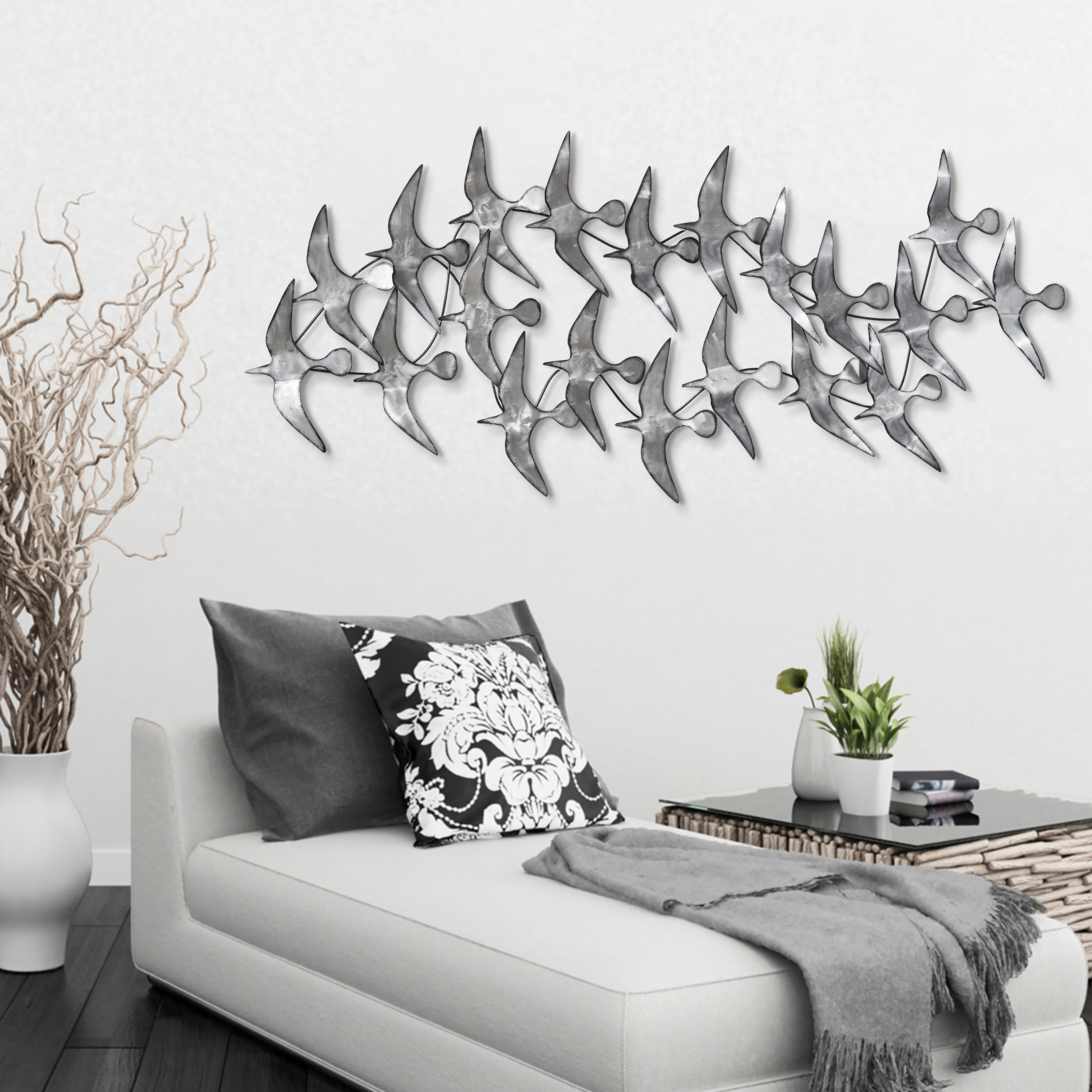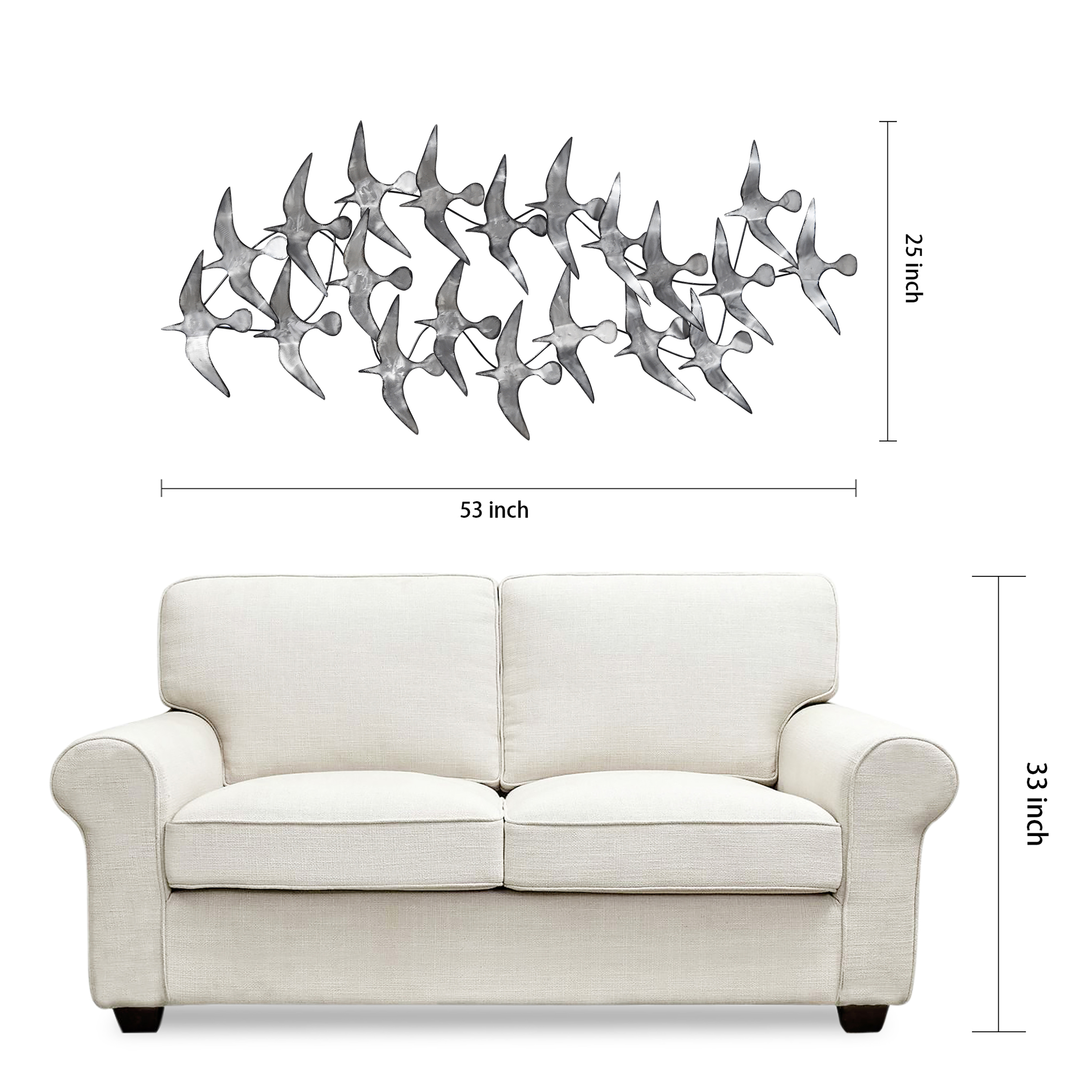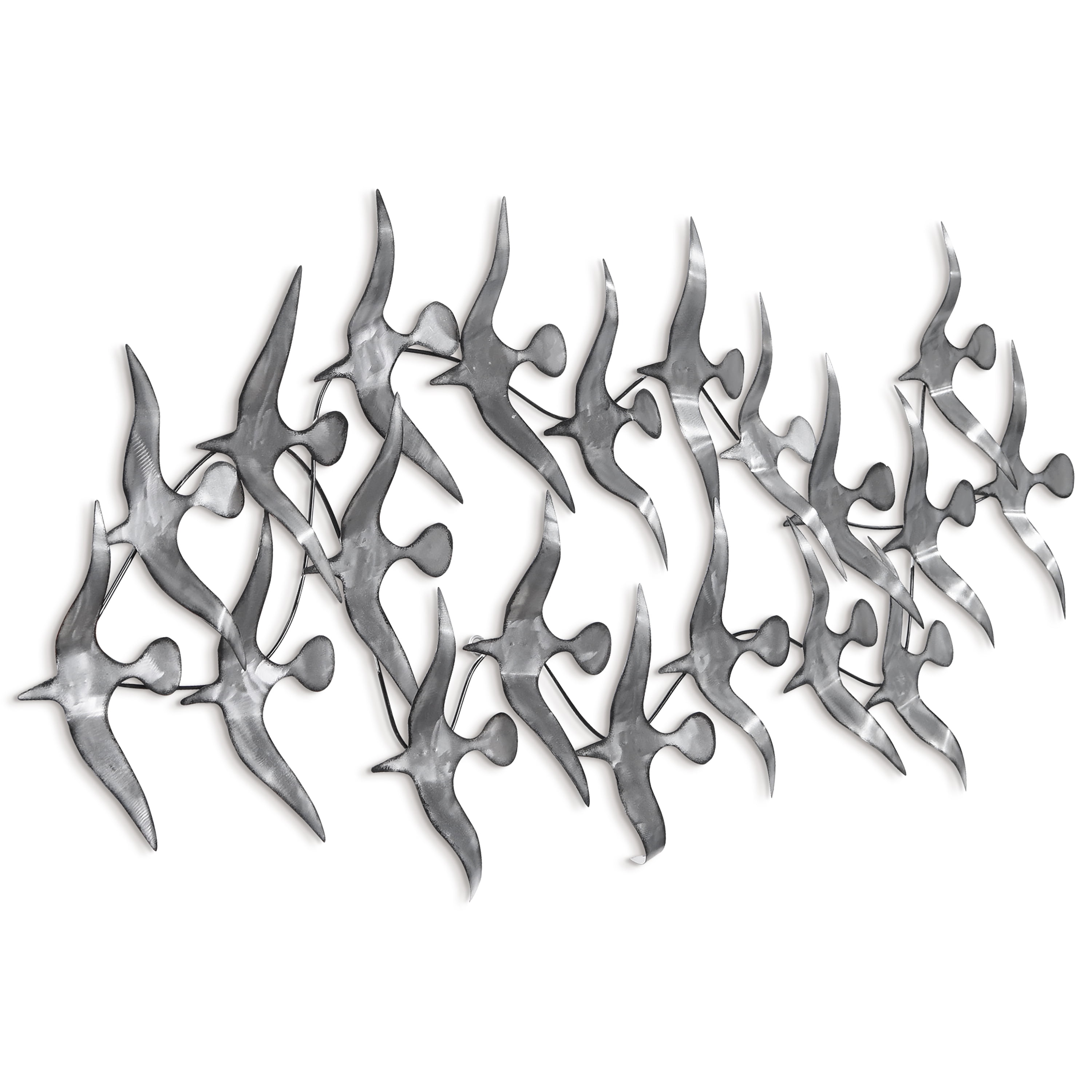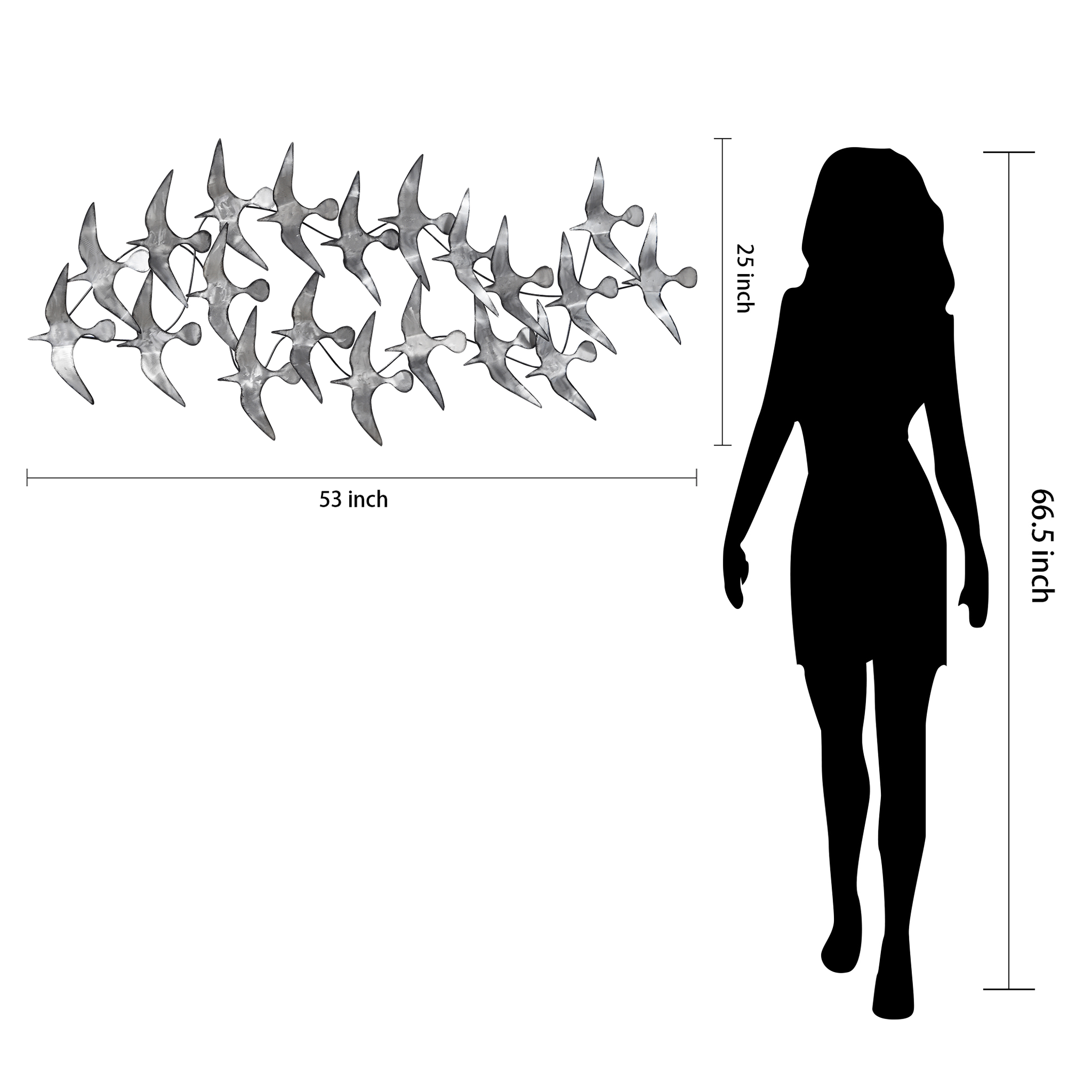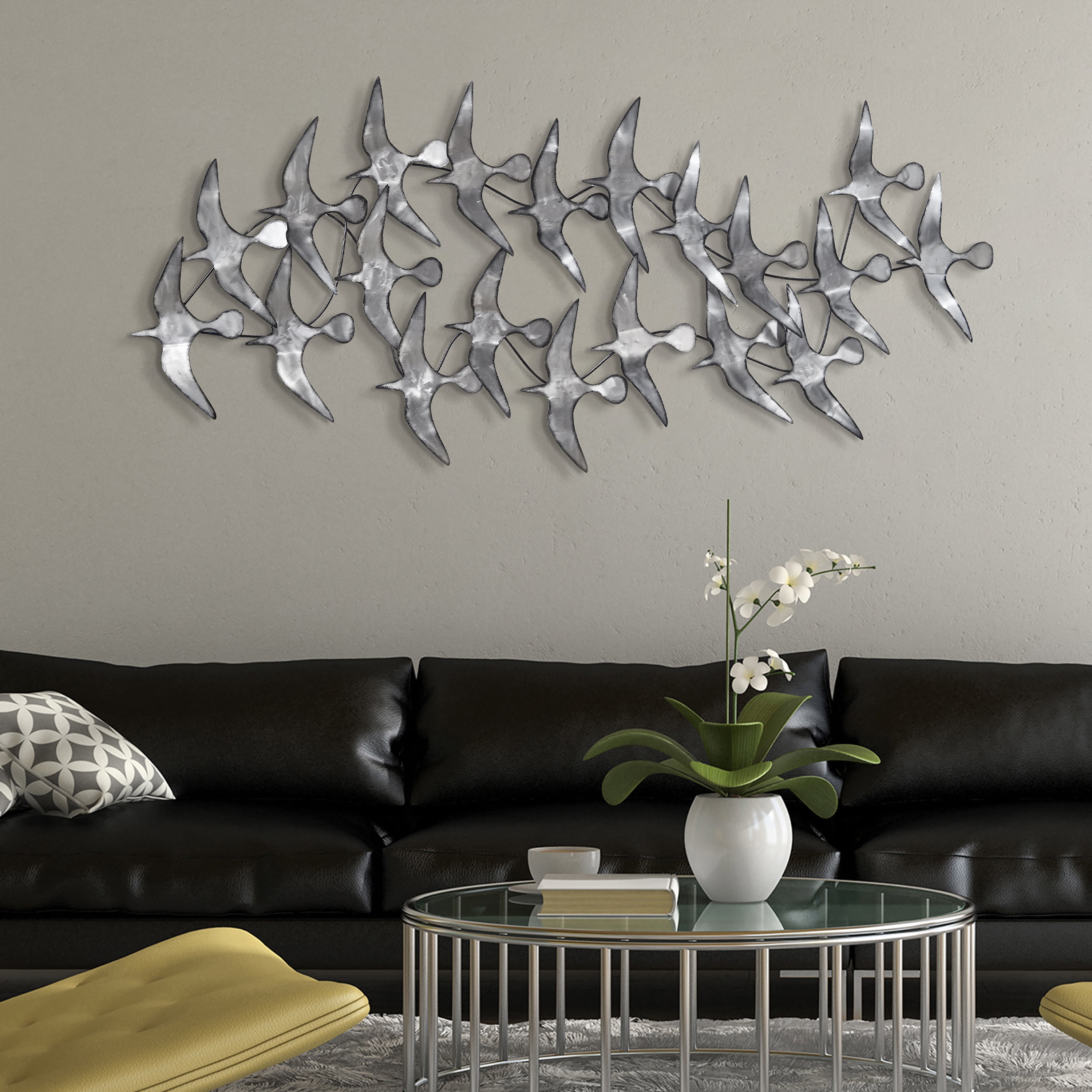 These beautiful flock of birds are handmade of metal sheets, is giving the birds fresh life with a hand-grinded finish, comes alive as the light changes. O-rings are attached to the back for quick and easy installation either vertically or horizontally. Our high-quality packaging will protect your art from any possible damage or bending in transit.