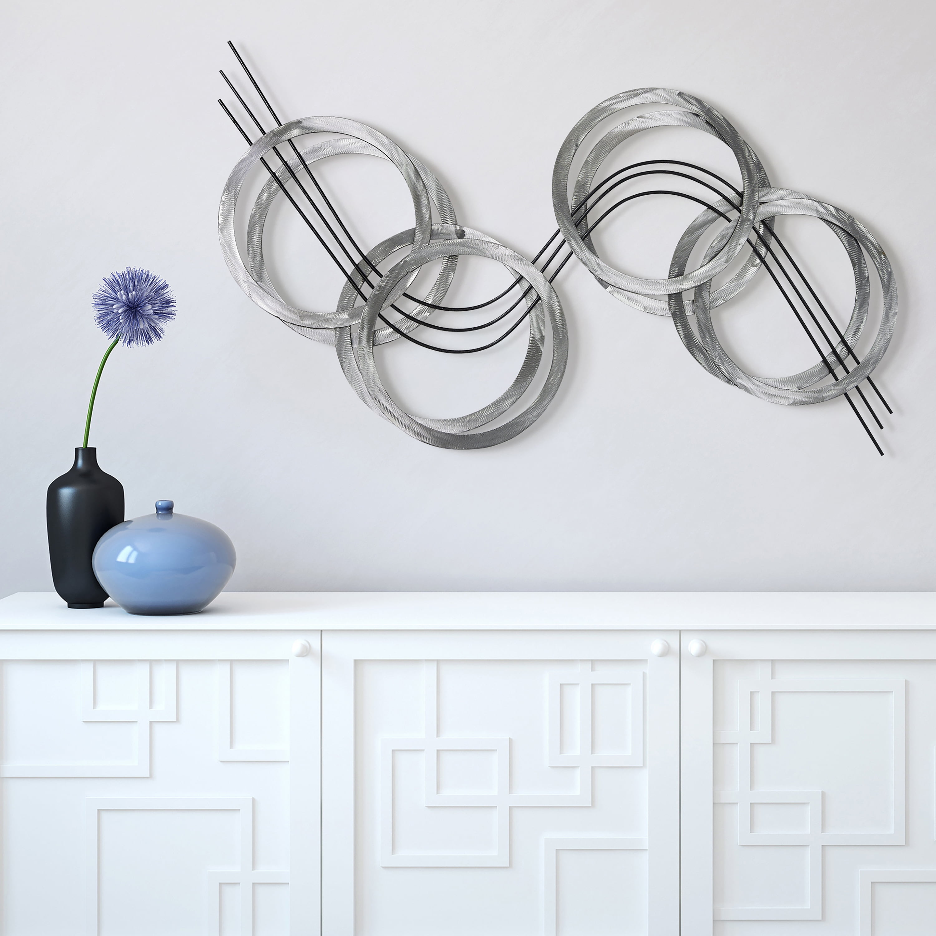 These elegant circles are handmade of metal sheets with hand-grinded finish, using the materials to highlight the geometry of planes, comes alive as the light changes. O-rings are attached to the back for quick and easy installation either vertically or horizontally. Our high-quality packaging will protect your art from any possible damage or bending in transit.