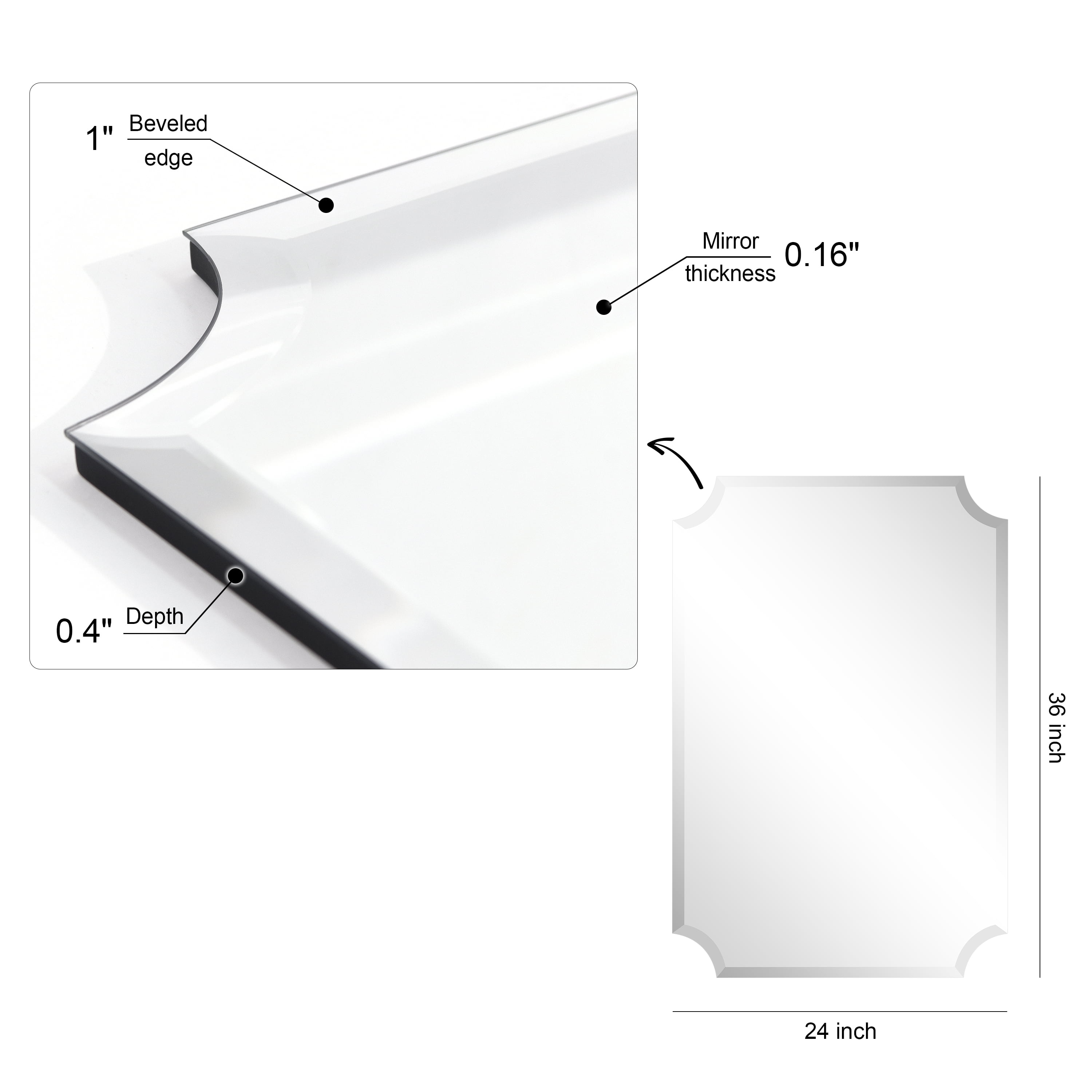 Beveled mirror Frameless Indoor use only Mirror can be displayed horizontally or vertically to fit your design needs Frameless rectangular Scalloped Beveled Mirror,Bathroom, Vanity, Bedroom Mirror,1″-beveled Edge