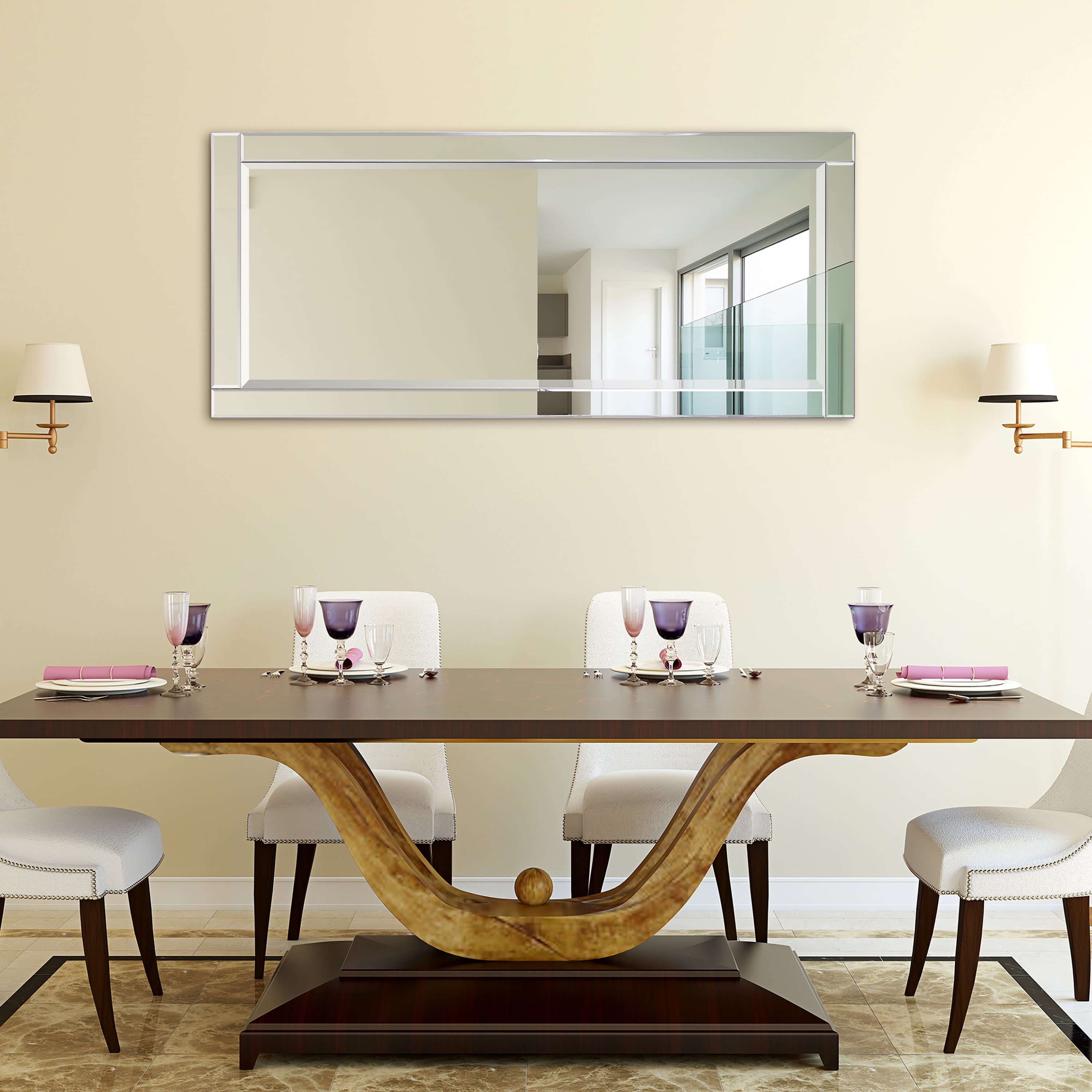 This 24″ x 54″ wall mirror is ideal for adding more utility to a wall and enhancing the space of a room, making it feel larger and lighter. The large rectangular mirror has a solid wood frame, sturdy and long-lasting, while the panels are clear mirror with a slight bevel. The bevel is 1 inch and serves to slightly extrude the mirror, giving it more texture and shape. It is a perfect focal point with a minimalistic and contemporary appearance for an entryway, bathroom, bedroom or any room in your home. 4 D-rings are attached to the back of the mirror for quick and easy installation either vertically or horizontally. Features Moderno Beveled Rectangle Wall Mirror Great for bathroom mirror, vanity mirror, living room mirror or bedroom mirror Ready to hang on wallSpecifications Weight: 45.2 lbs – SKU: EPAD2611