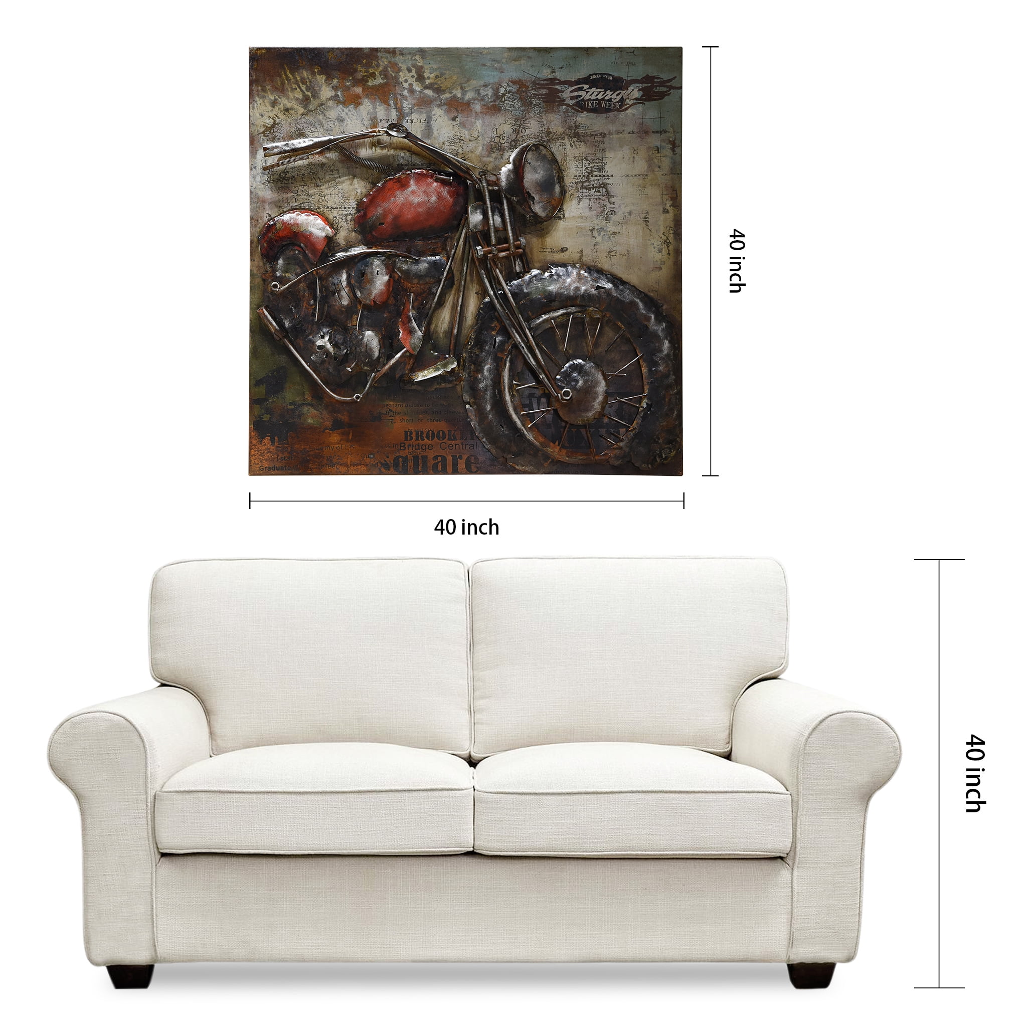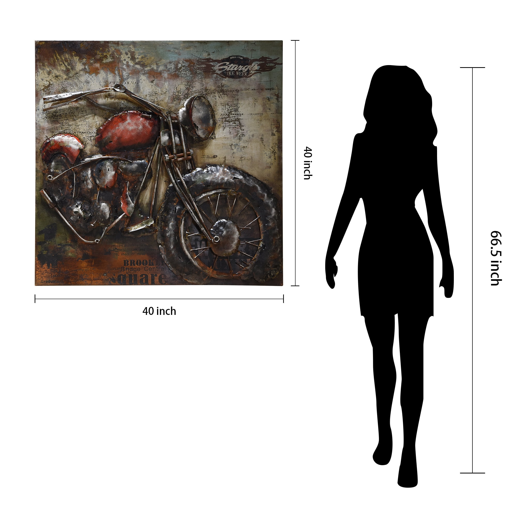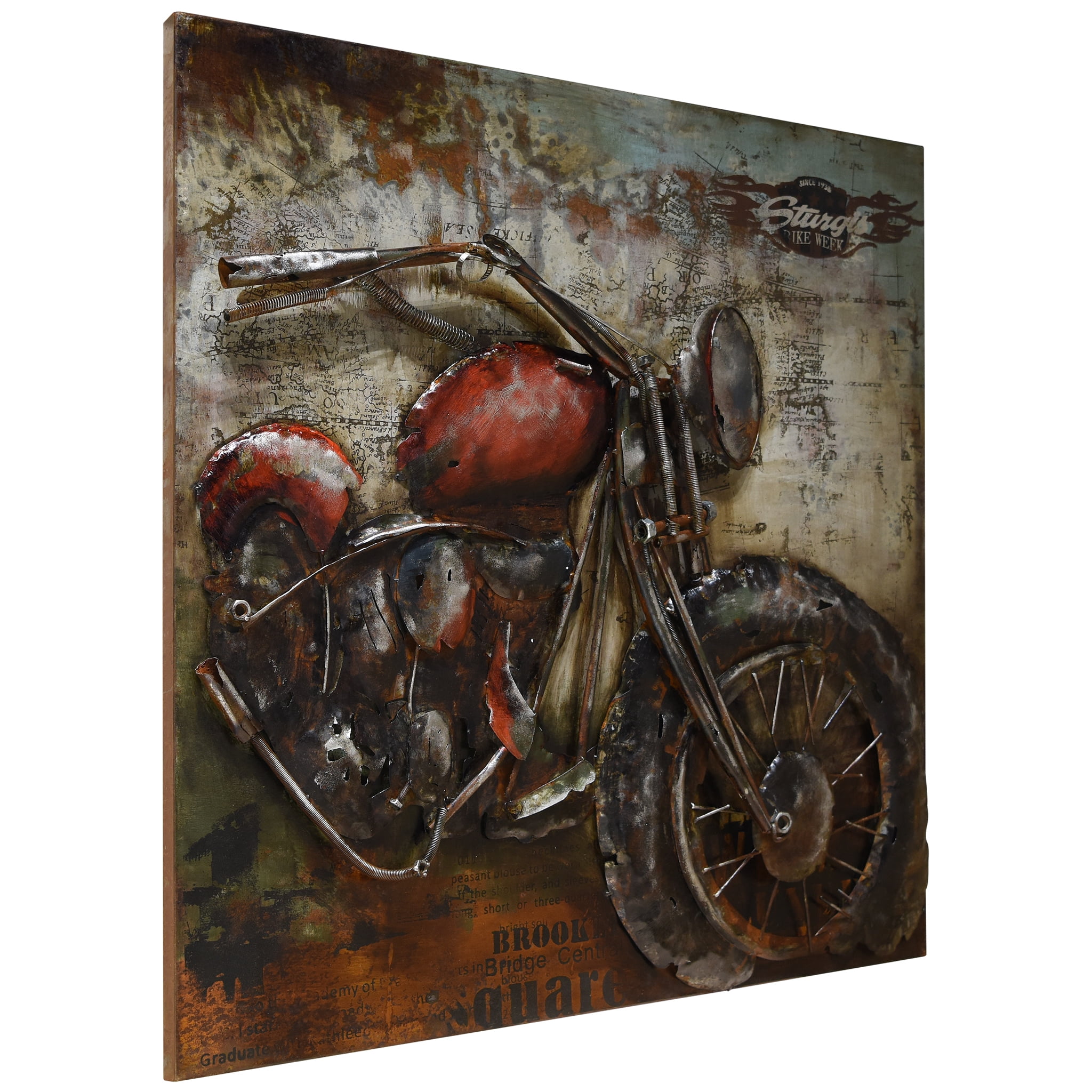 Primo Mixed Media Hand Painted Iron Wall Sculpture – Motorcycle 2 Home decor items are the best way to ensure that you can inject your personality into your home and make everything look like a reflection of who you are. Choose from an exciting range of products for home decor and add lovely silhouettes or textures to any room. The Harley is a stylized metal sculpture of the classic bike superimposed on a timeless map with a Sturgis Bike Week logo. Great for any enthusiast. Features Iron wall sculpture Hand painted mixed media Designed by PrimoSpecifications Style: Contemporary Material: Metal Subject: Transportation Dimension: 40 x 3.5 x 40.0 in. Weight: 24.9 lbs – SKU: EPAD1957