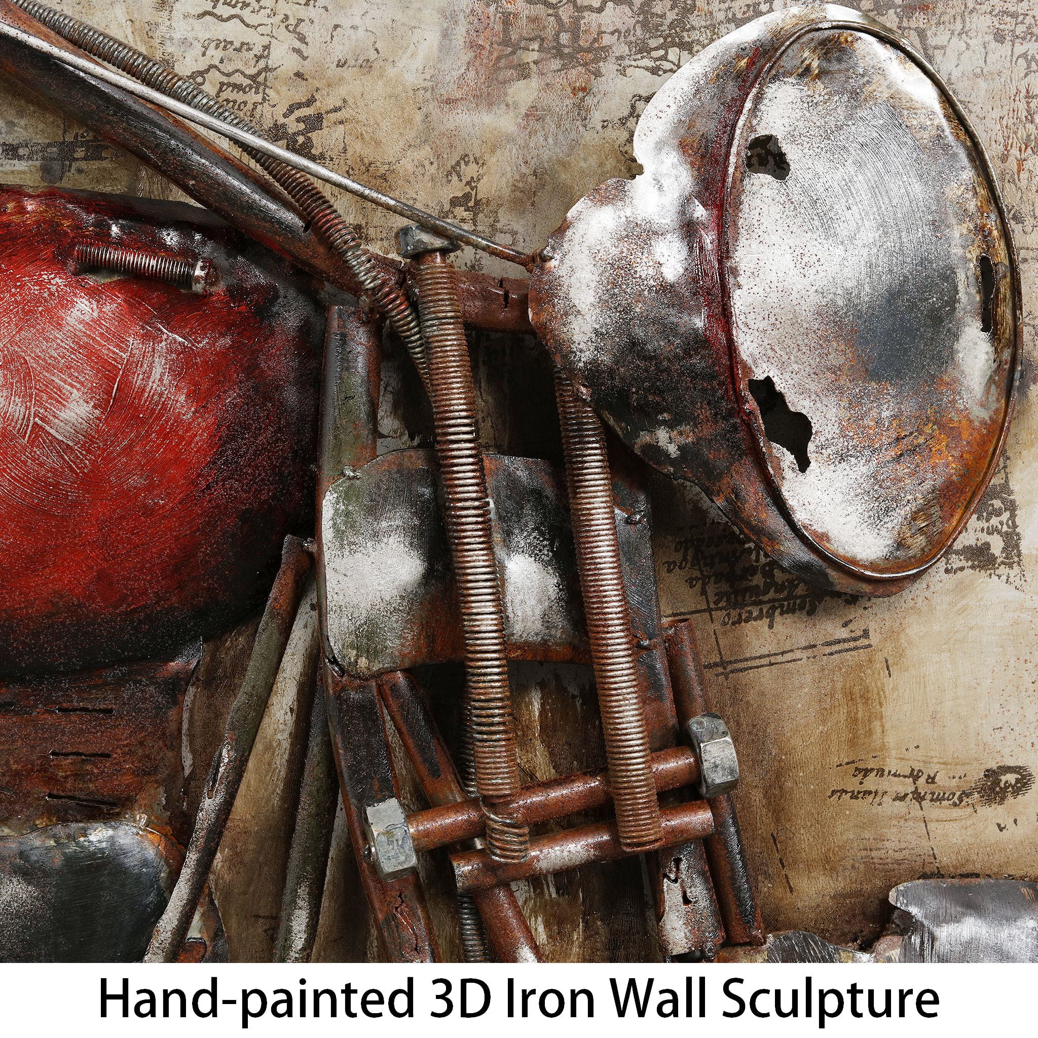 Each piece involves complex craftsmanship, cutting, modeling, welding, aging treatment, anti rust treatment, coloring, matte surface treatment, etc. Hand Painted Frameless This art is simple to hang as it comes with a customized hanger kit that will have your art displayed in just a few minutes
