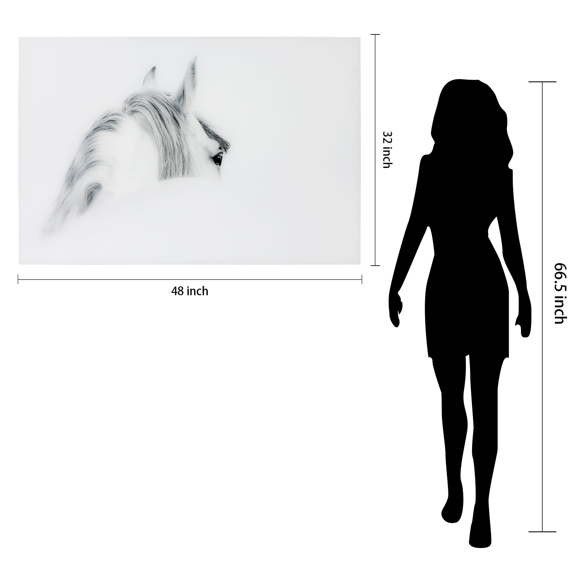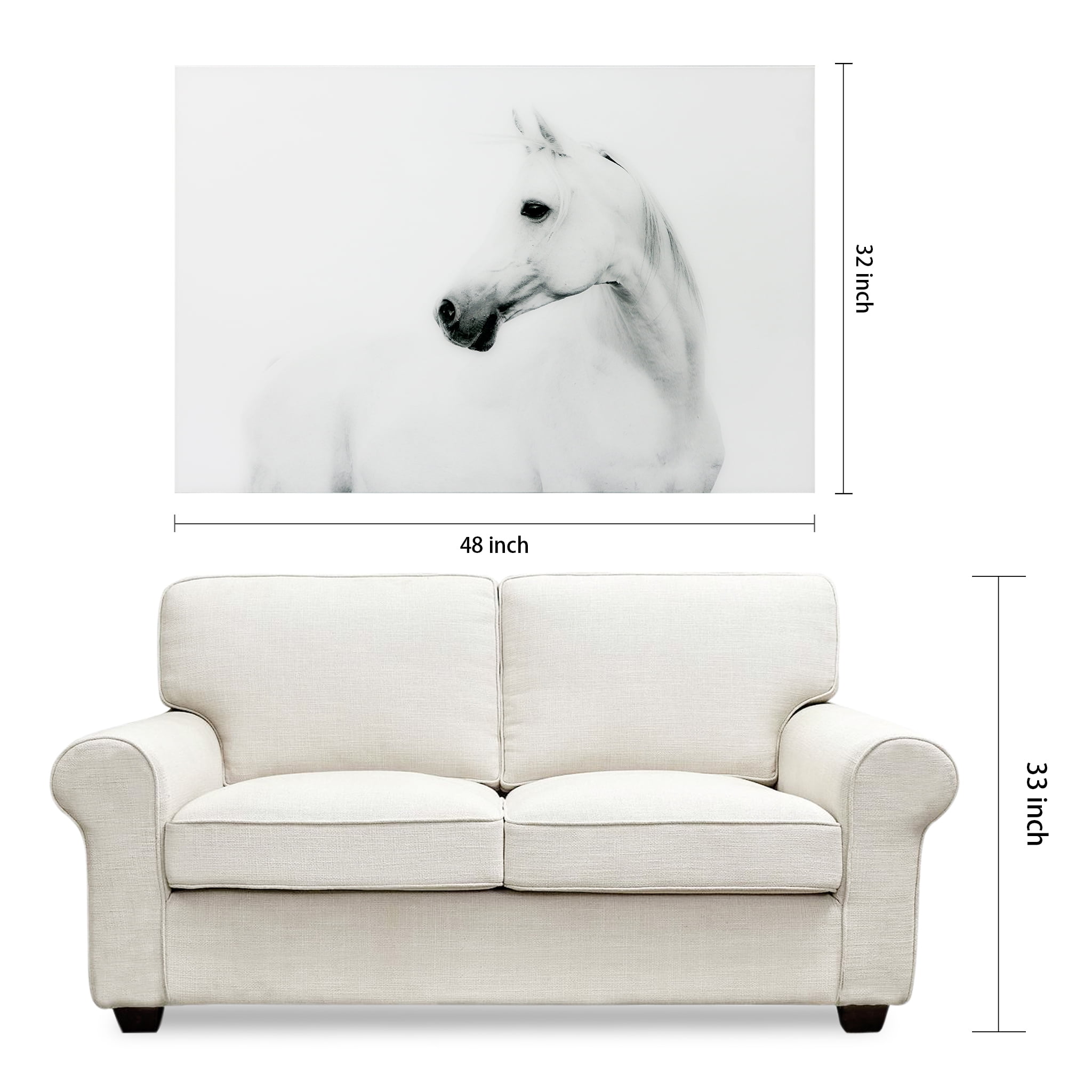 Empire Art Direct White Horses Set Frameless Free Floating Tempered Glass Panel Graphic Wall Art, 48″ x 32″ each, Ready to Hang