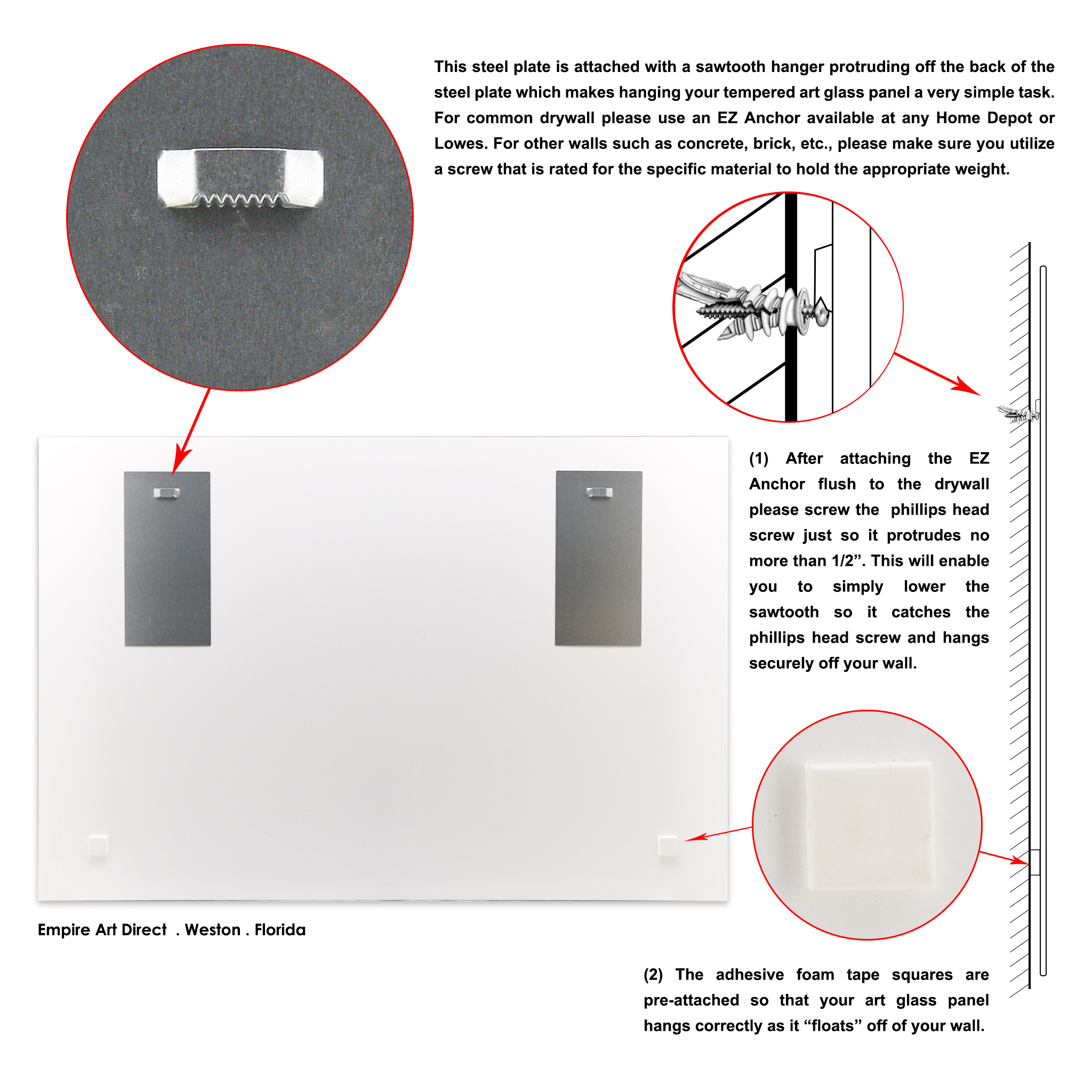 Reverse UV printing on tempered glass Free floating tempered art glass Frameless Stainless steel sawtooth hanger safely secure art to wall
