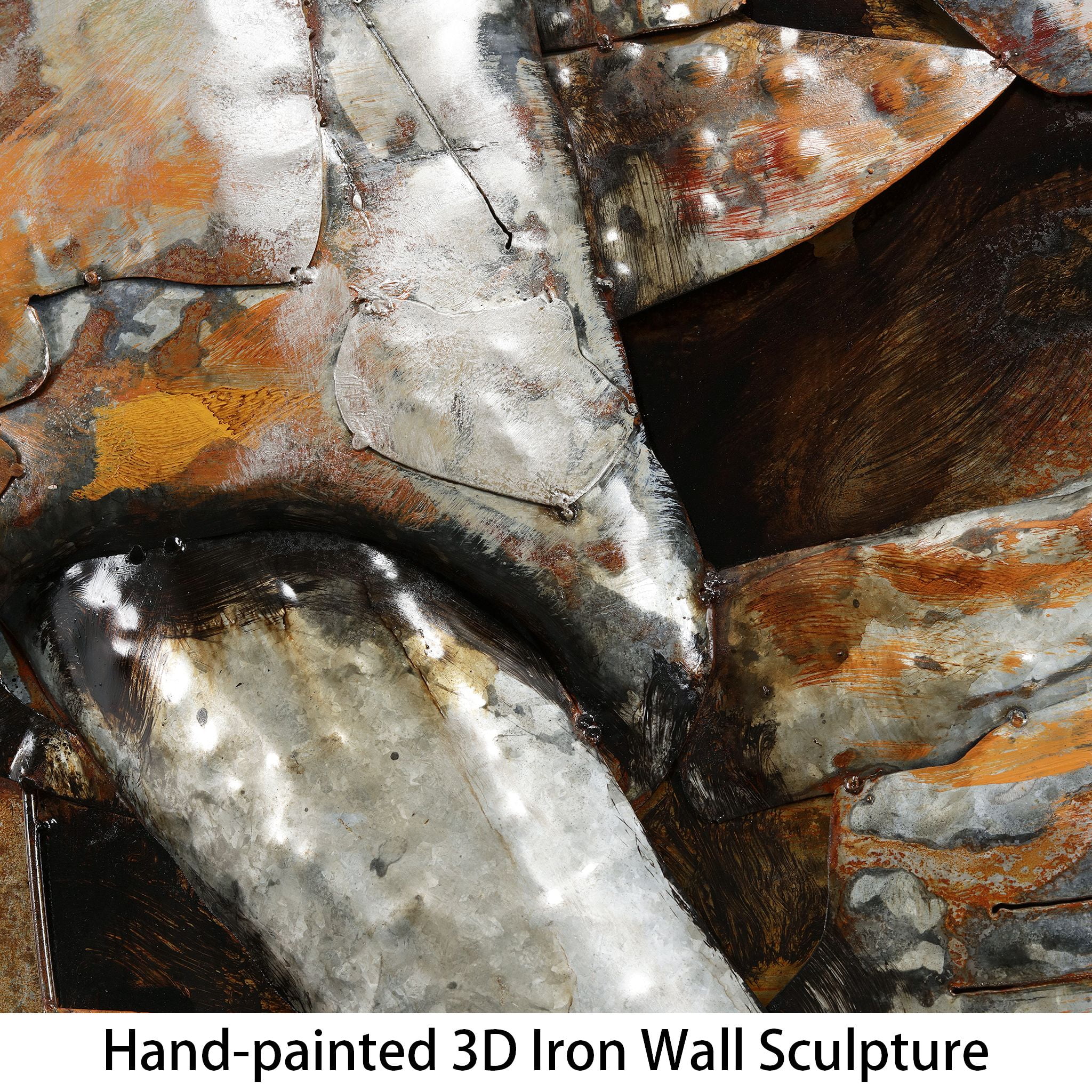 Each piece involves complex craftsmanship, cutting, modeling, welding, aging treatment, anti rust treatment, coloring, matte surface treatment, etc. Hand Painted Frameless This art is simple to hang as it comes with a customized hanger kit that will have your art displayed in just a few minutes