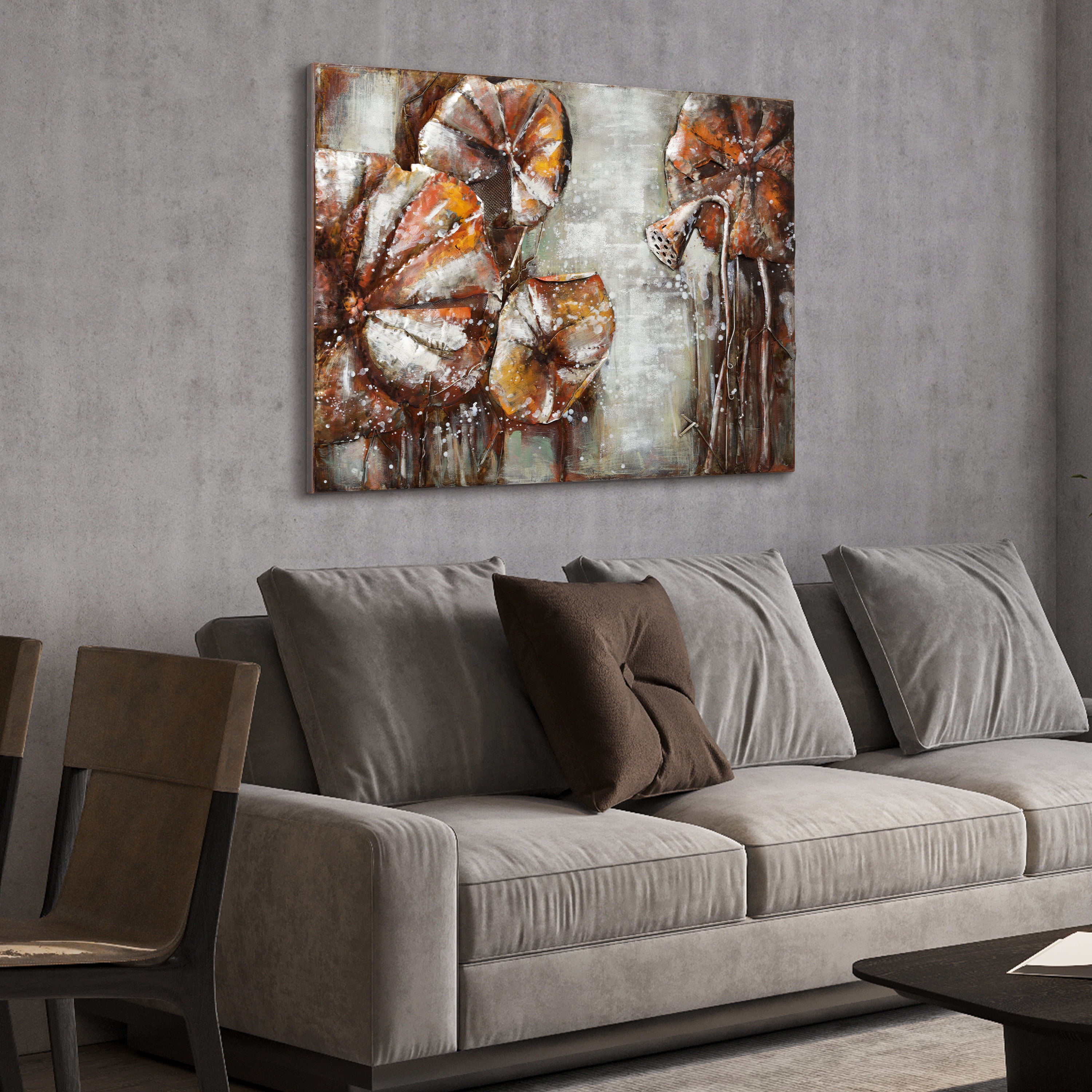 This moody and somberly beautiful work is another example of Primo’s incredible feel for taking the mundane and bringing it to life using only the most basic construction materials You can almost feel the mist coming off the lake as you gaze at this intriguing piece of artwork Primo calls upon his many years of experience to bring a many-layered and three dimensional look to each unique piece Incredibly detailed, hand painted, and signed by the artist, the water lily pads are an interesting addition to your collectionSpecificationsDimensions: 48″ H x 24″ W x 36″ L