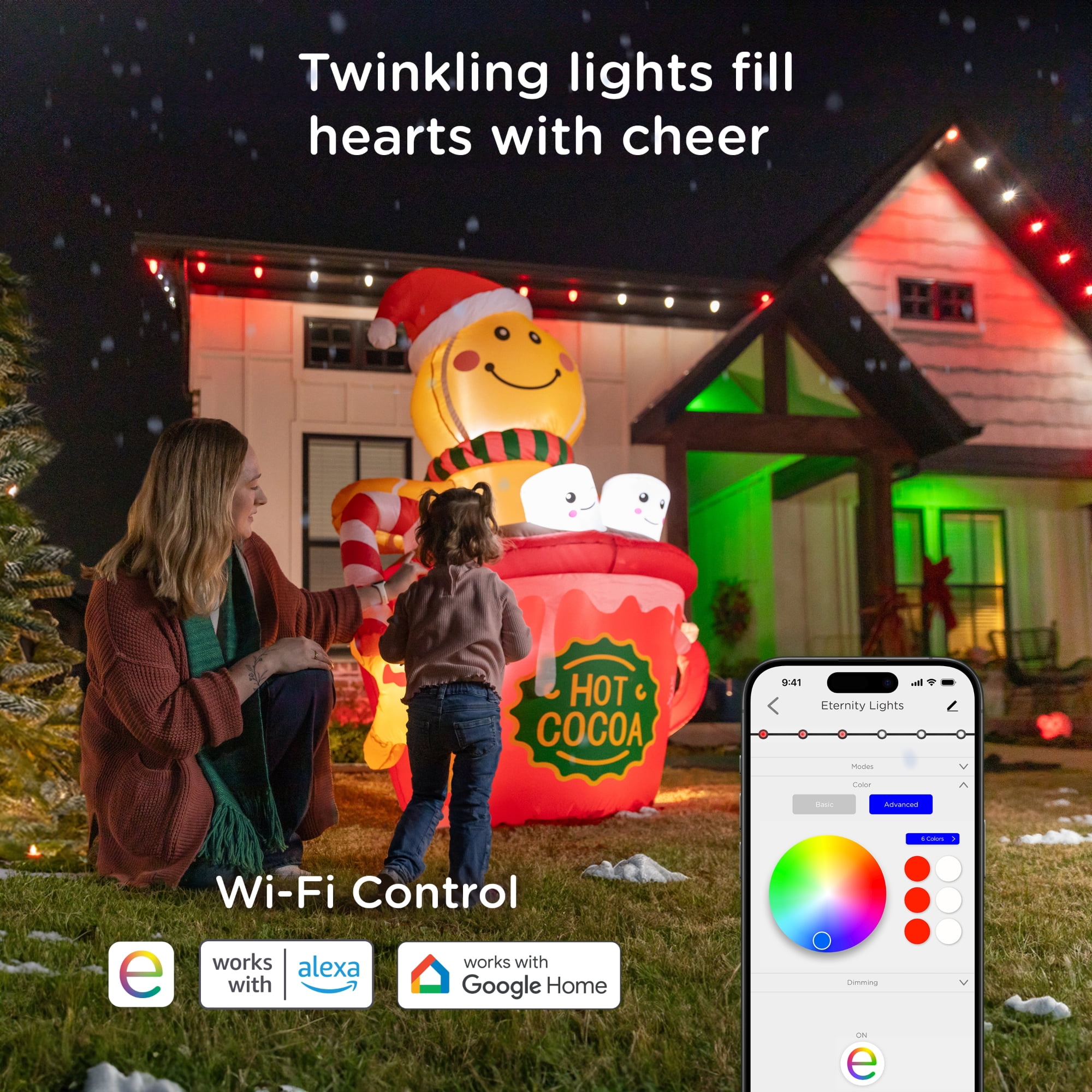 Enbrighten 50ft Wi-Fi Eternity Lights, Permanent Outdoor Lights, 36 LEDs, Smart LED Eaves Lights for Christmas, Halloween, Party, Game Day and More