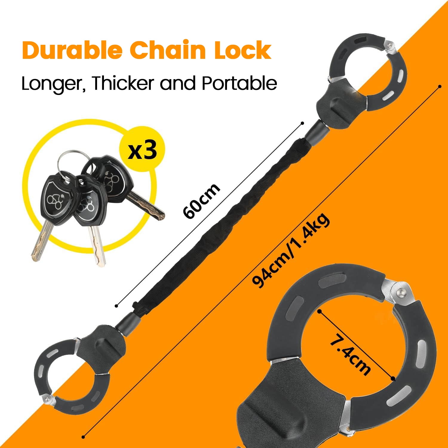 Enroslu Scooter Chain Lock, Bike Lock, Electric Scooter Lock, Security Anti-Theft Bike Lock, Chain Lock and Bag for Electric Scooter, Motorcycle, Bicycle