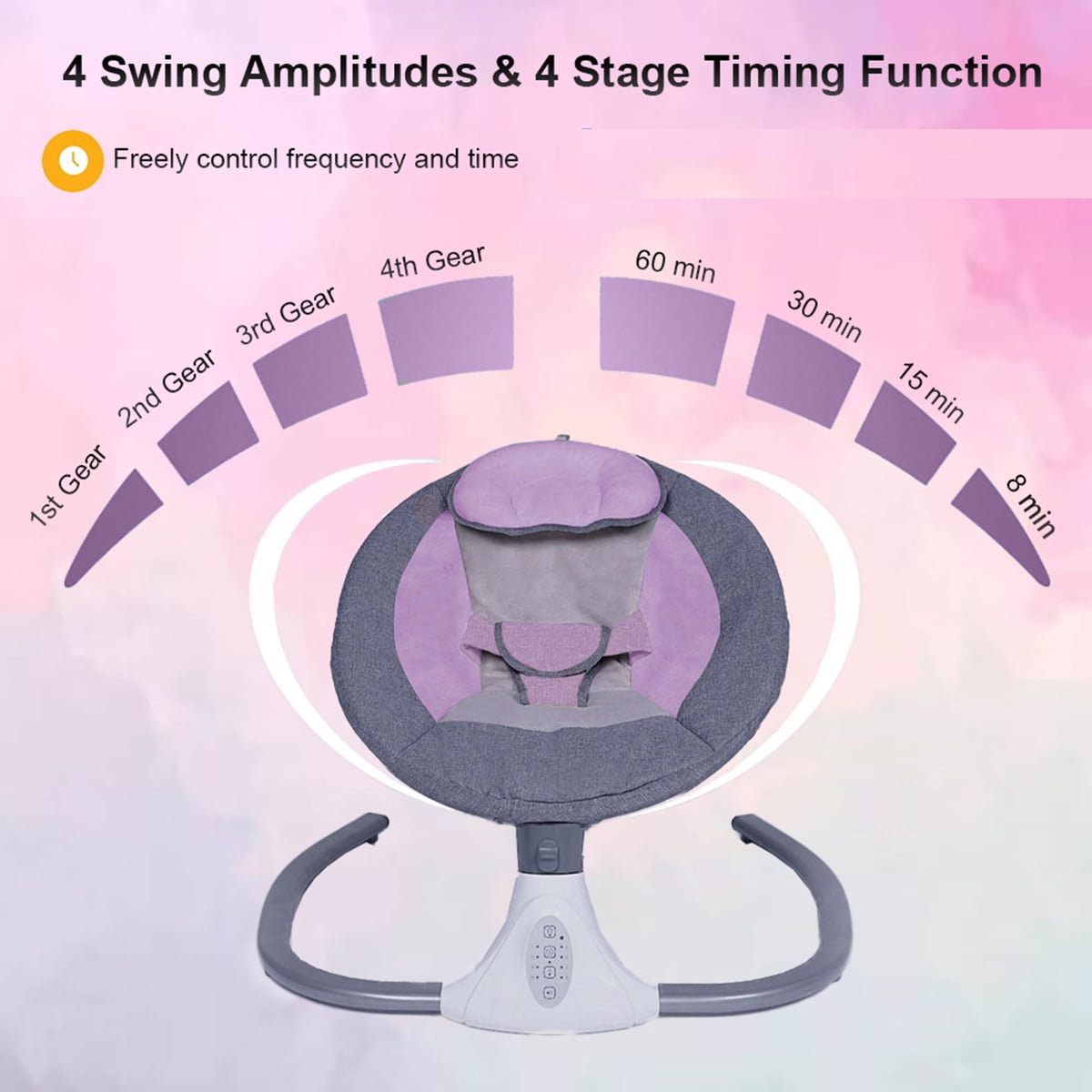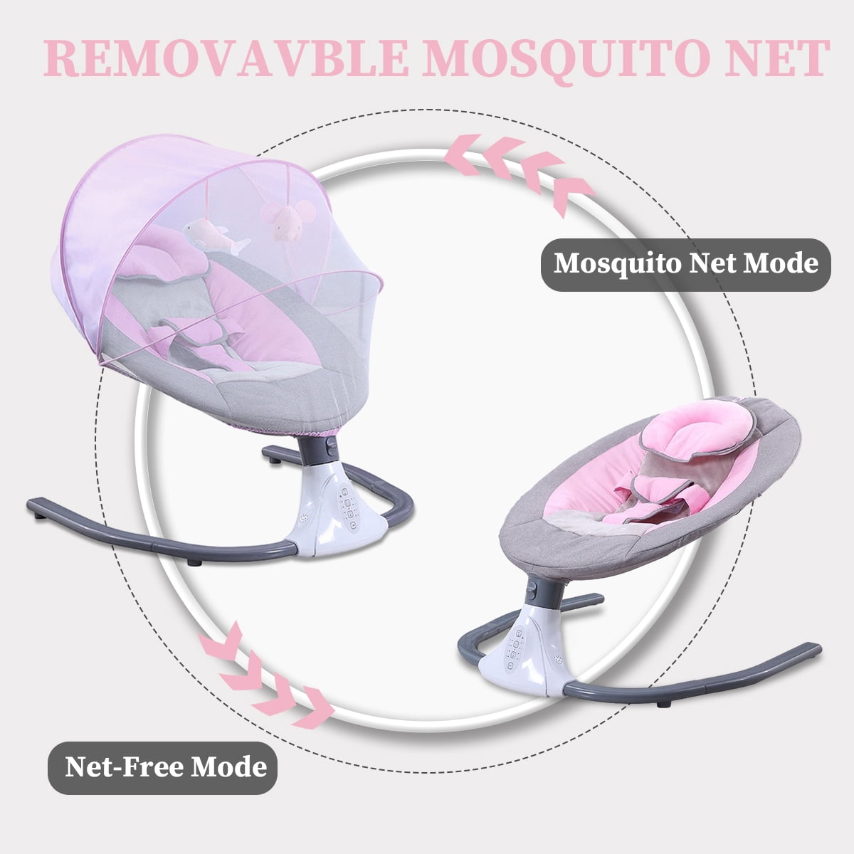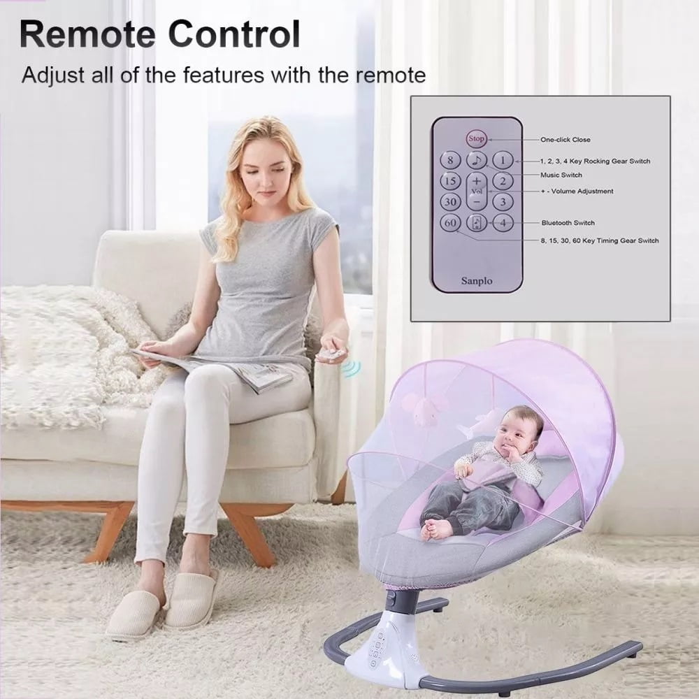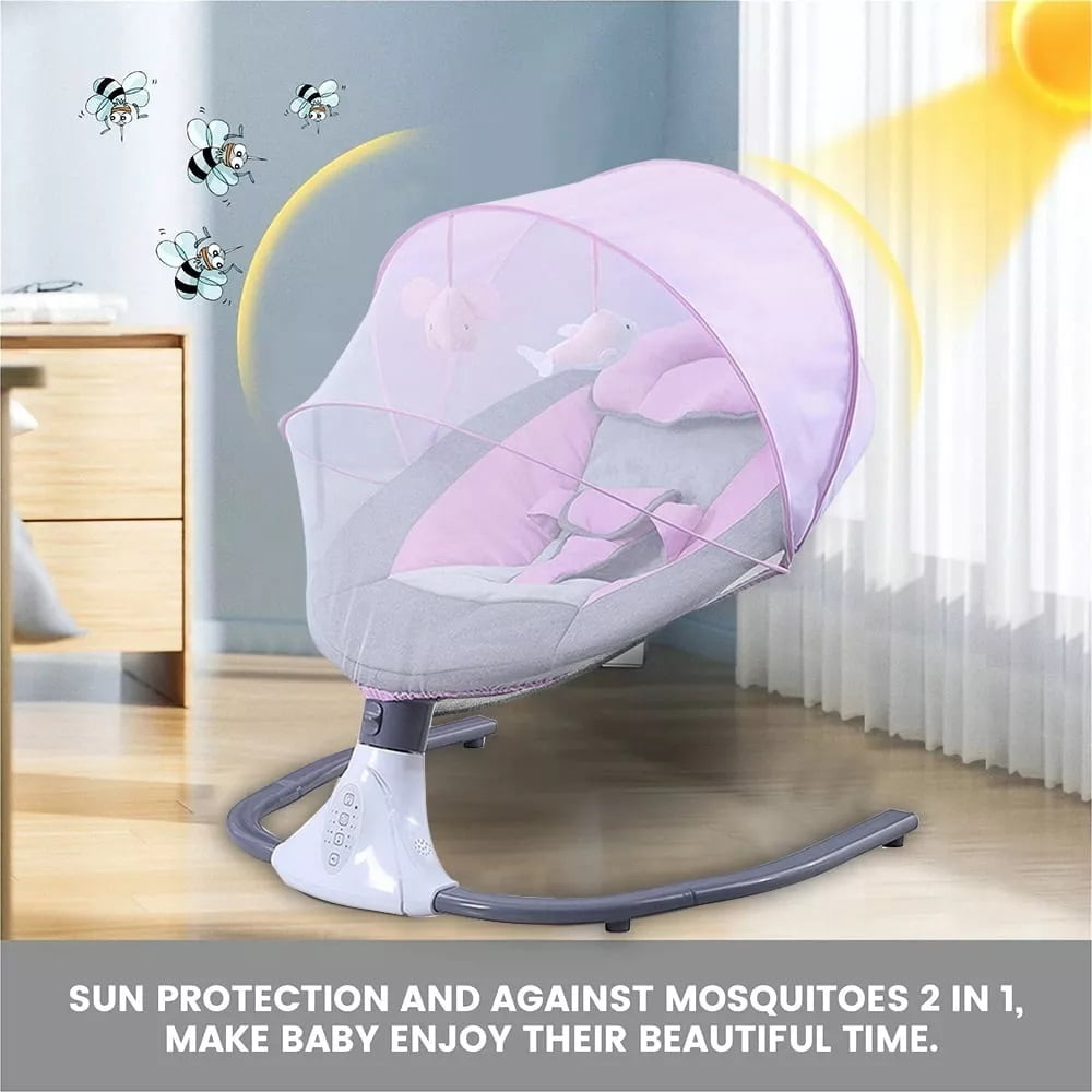 Great Relief for Moms & Dads–Featuring 4 swing angles, this baby swing moves at a constant speed so babies can quickly get familiar and fall in love with its pace. Anytime needed, it swings your baby, comfortably and soothingly. Sweet Lullabies & Timing Function–This infant baby swing comes with 12 built-in lullabies to give your baby a good rest.It also supports connecting to your phone so you can play whatever you want your baby to listen to, a piano piece or a lullaby that you’ve heard when you’re a baby. Let it soothe your baby to sweeter dreams while swinging gently. Ergonomics for Comfort & Safety–With arc-shaped design, the baby swing protects the baby’s spine well. Removable pillows help adjust height accordingly, and thicker, padded. Easy to Power Up & Control–Made for easy use, it can work once connected to a power outlet, requiring no batteries or charging. With a convenient control panel and remote control, you can play lullabies, set a timer, adjust the swing angles or turn on rest mode with just a press when you’re doing housework or busy in your e-meeting. Detachable & Machine Washable–The detachable fly-net, pillow, and seat cover add great convenience for machine wash. It measures 25.5″*24.4″*20.8″, fitting in most rooms easily. Material: Alloy Steel/ Polyester Fiber/ ABS Design: Music,Bluetooth,4 Swing and 4 Timing Style: COMEONROA Electric Baby Swing Color: Gray,Blue,Pink Weight: 8.8 lb Power Supply: 5v/1a Power: 1-3w Gender:Unisex, Boys and Girls Applicable Age: 0-18 Months Weight bearing: Below 20KG Size: 25.5″*24.4″*20.8″