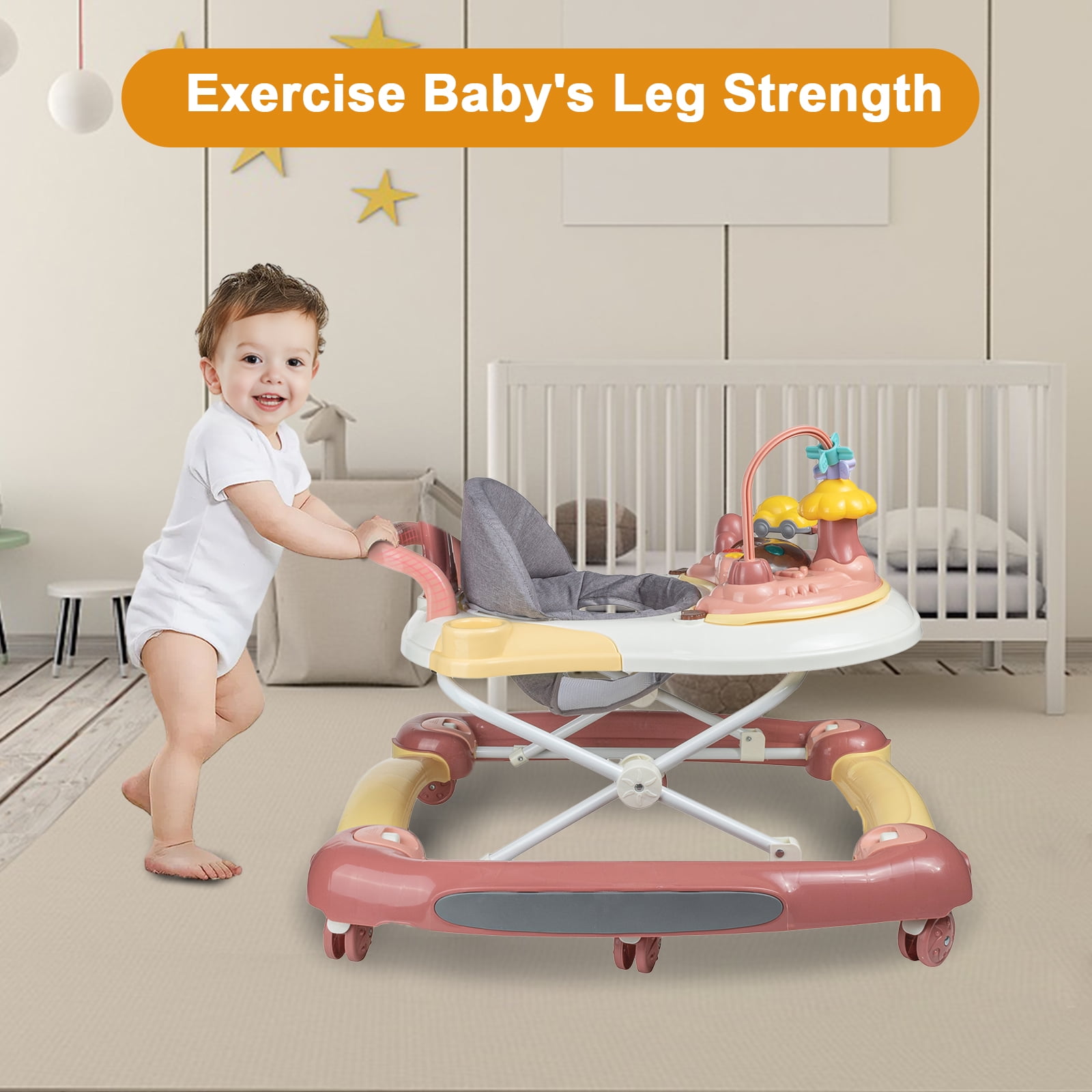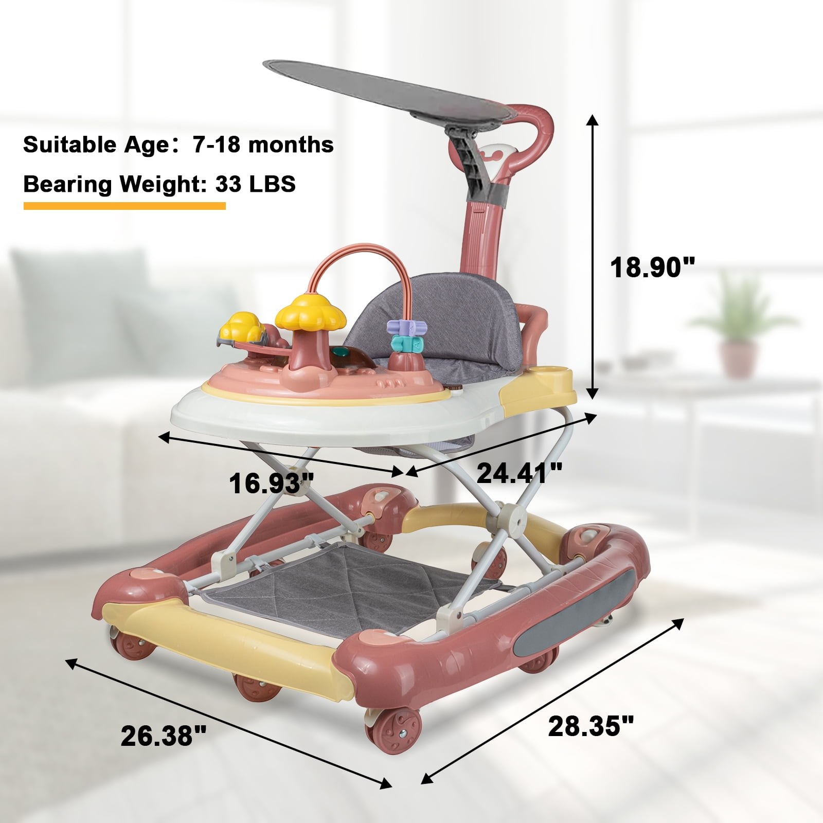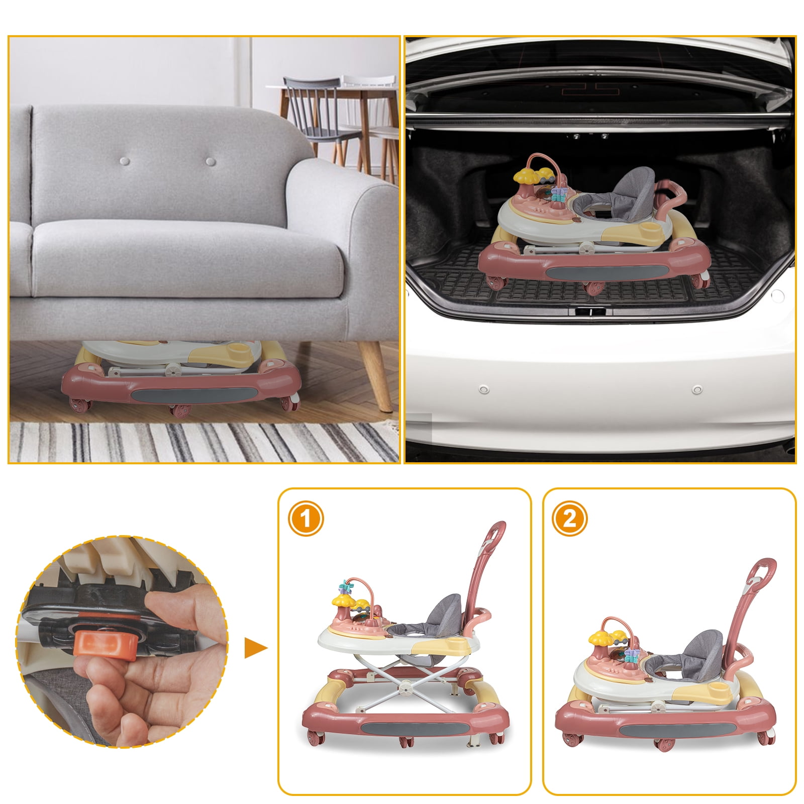 EONROACOO 5-in-1 Baby Walker with Wheels,Infant Toddler Walkers Bouncer for Boys Girls,Pink