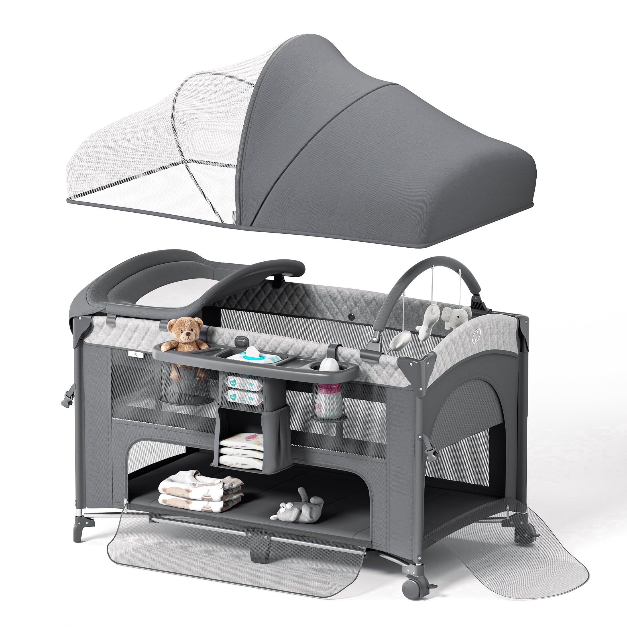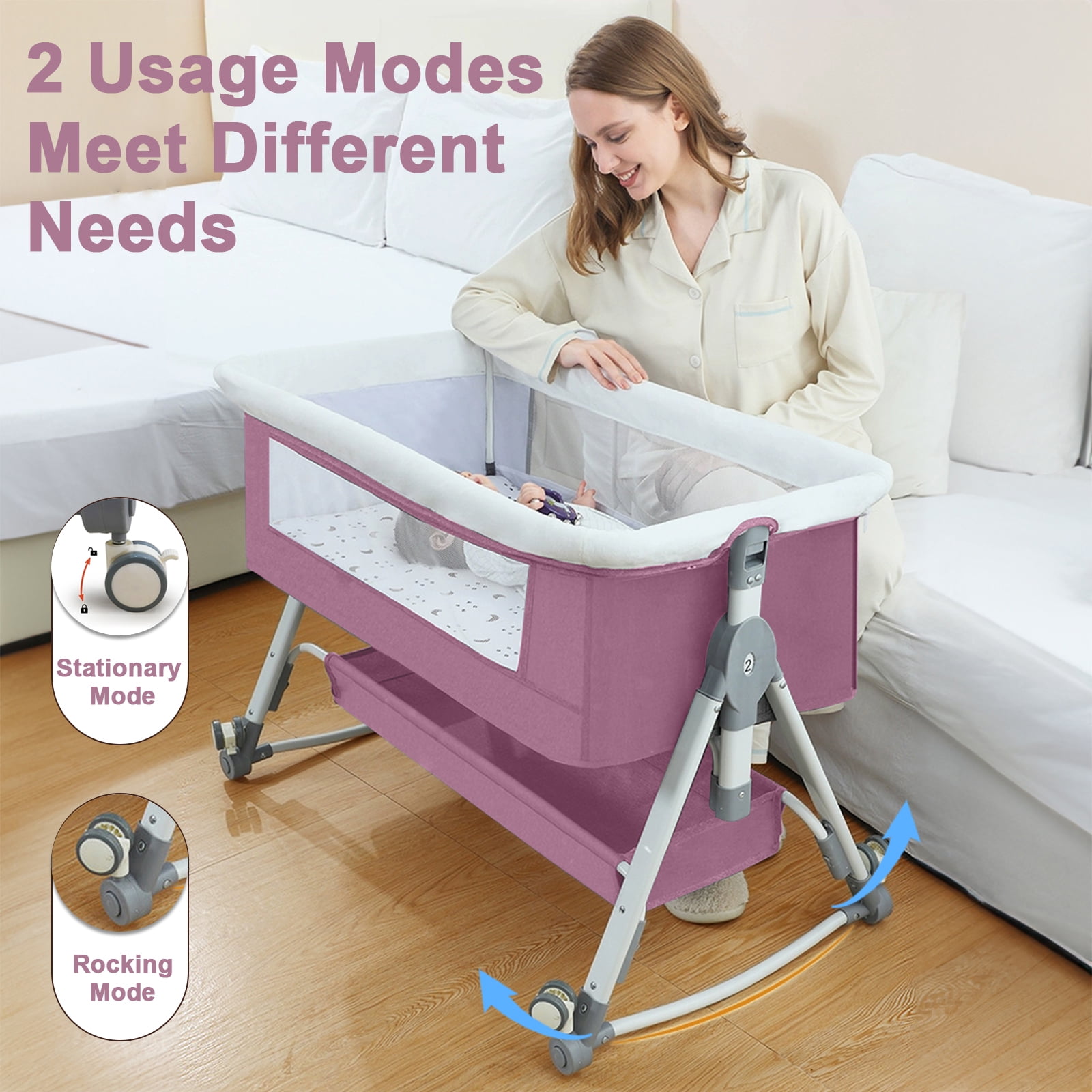 【5 Height Adjustment & Stable Structure】The baby bedside crib has 5 levels of height adjustment, suitable for adult beds of different heights. Adopting a high load-bearing thick steel pipe bracket and a golden triangle stable structure, it effectively prevents the baby’s bassinet from flipping over. 【Changing Table & Large Storage Basket】The baby bassinet is equipped with a changing table and a large storage basket to store various items of the baby, providing convenience for parents to change diapers for their babies. 【Rocking Mode & Stationary Mode 】There are two modes for the Bedside Crib, stationary mode and rocking mode. You can easily switch to rocking mode to let your baby relax. Detachable mosquito net with zipper to prevent mosquitoes and block strong light. 【Silent Universal Wheels & Comfort Mattresses】The silent universal wheel can be locked, making it easy for you to push it effortlessly. Equipped with a comfortable mattress to protect the baby’s spine, detachable and washable. Baby Bedside Crib fabric is skin friendly, comfortable and breathable. 【Foldable and Easy to Store】You can quickly and easily fold it, store it in the corners of your home and in the back of your car, making it more convenient to carry when going out. 【After-sale Service】If there are any quality issues, please feel free to contact us at any time. Brand: EONROACOO Color: Gray, Pink Weight: 18.82 lb Material: Carbon Steel Linen Cotton Gender: unisex, baby girls, baby boys Design: foldable, 5 adjustable height Type: Bassinet with wheels and changing table Weight bearing: 50KG Age range: 0-24 months Size: 35.83″ x 22.44″ x 33.07″
