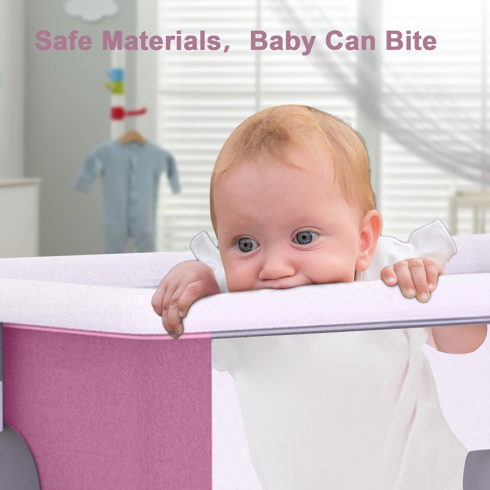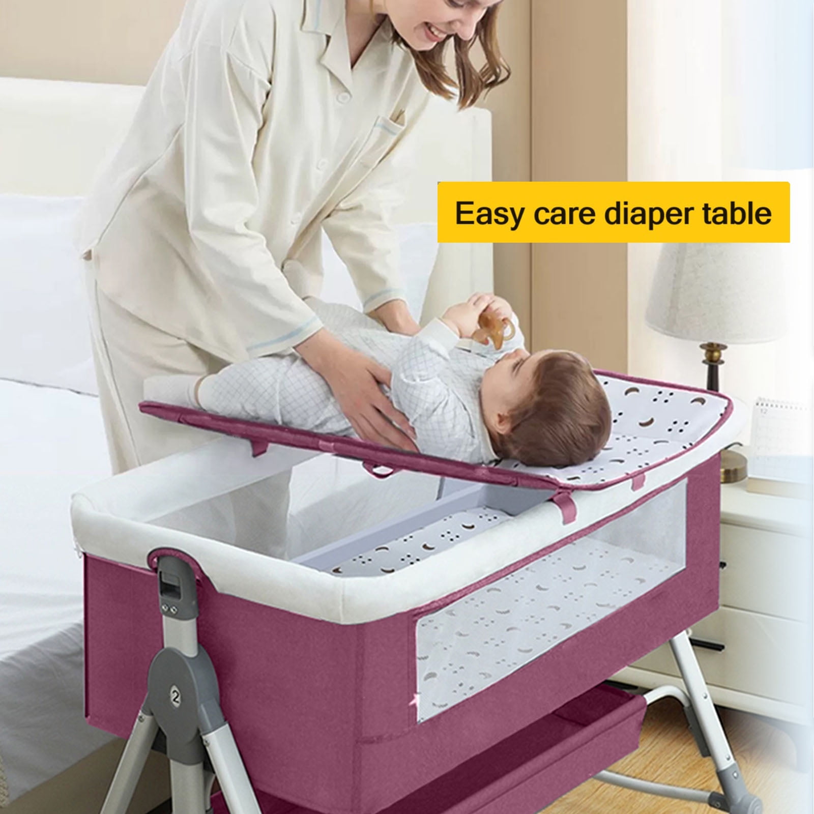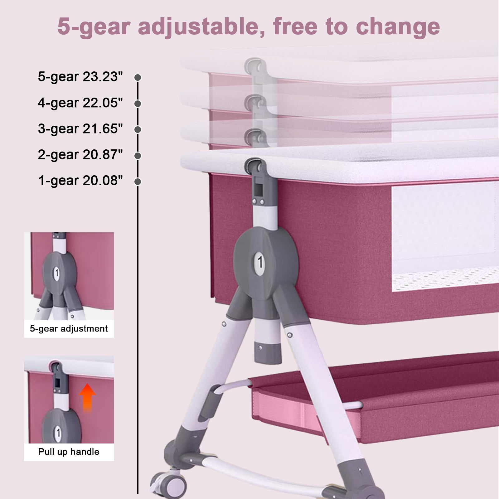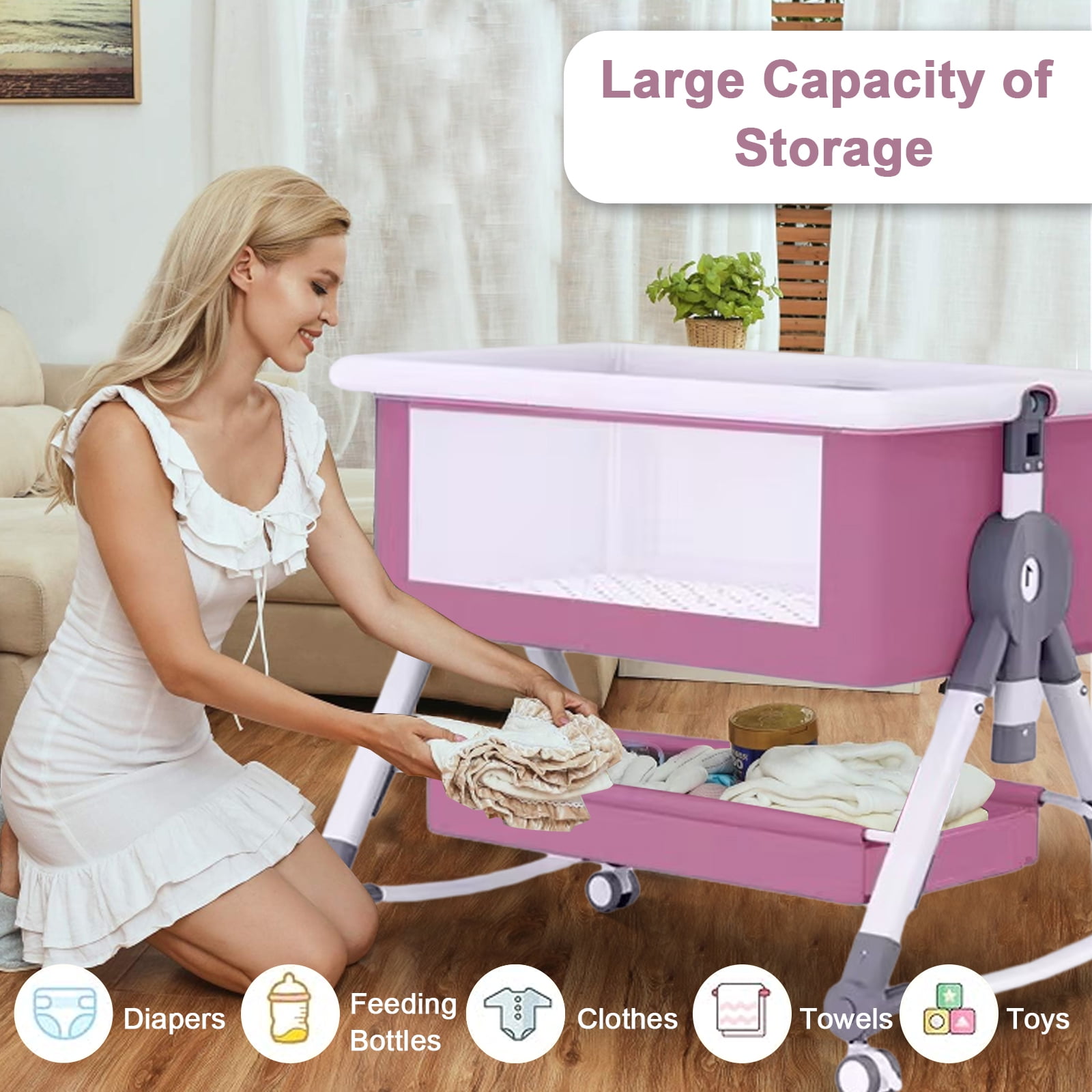 EONROACOO Foldable Baby Bassinet with Changing Table, Adjustable Bedside Crib for Infant, Pink