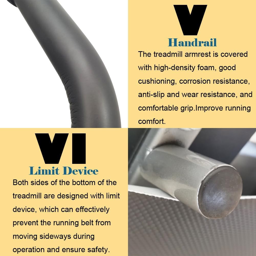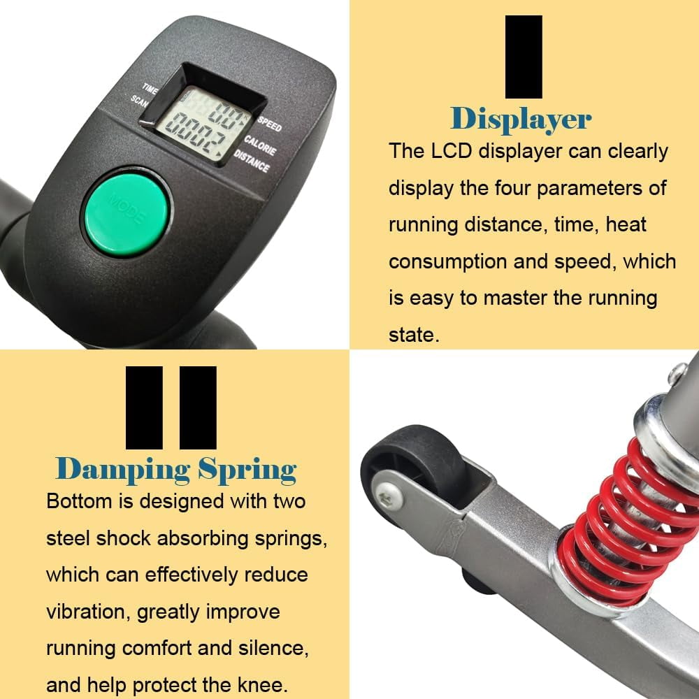 [NON-ELECTRIC TREADMILL] – A small compact treadmill for flat and office workouts. It can be placed indoors, outdoors, or anywhere you can exercise without worrying about outlets and power. [FOLDABLE AND EASY TO MOVE] – This portable treadmill can be simply folded up. Designed with transport wheels for easy movement and storage. Takes small room when folded and placed upright. It is a space-saving treadmill. [2 DIFFERENT INCLINES] – This treadmill is equipped with a 3° lift range and a 7° lift range. Switch between walking and running modes at will. The side strips are equipped with anti-slip pads, which can stop running immediately when the speed is too fast to ensure safety. [NON-SLIP RUNNING BELT] – This treadmill uses a durable running belt with a large 34.6″ x 13″ running area to provide a better running experience and prevent injuries. The sturdy quality steel construction can withstand over 242 lbs of weight and remain stable. Soft and comfortable handlebars help you maintain your balance. All this makes you feel safe and secure during your cardio training. [MULTIFUNCTIONAL DIGITAL DISPLAY] – The digital display clearly shows time, speed, distance and calories, tracking your workout progress on the easy-to-read digital display, so you can see your exercise data at a glance. This treadmill will get you started on a safe and scientific fitness journey.