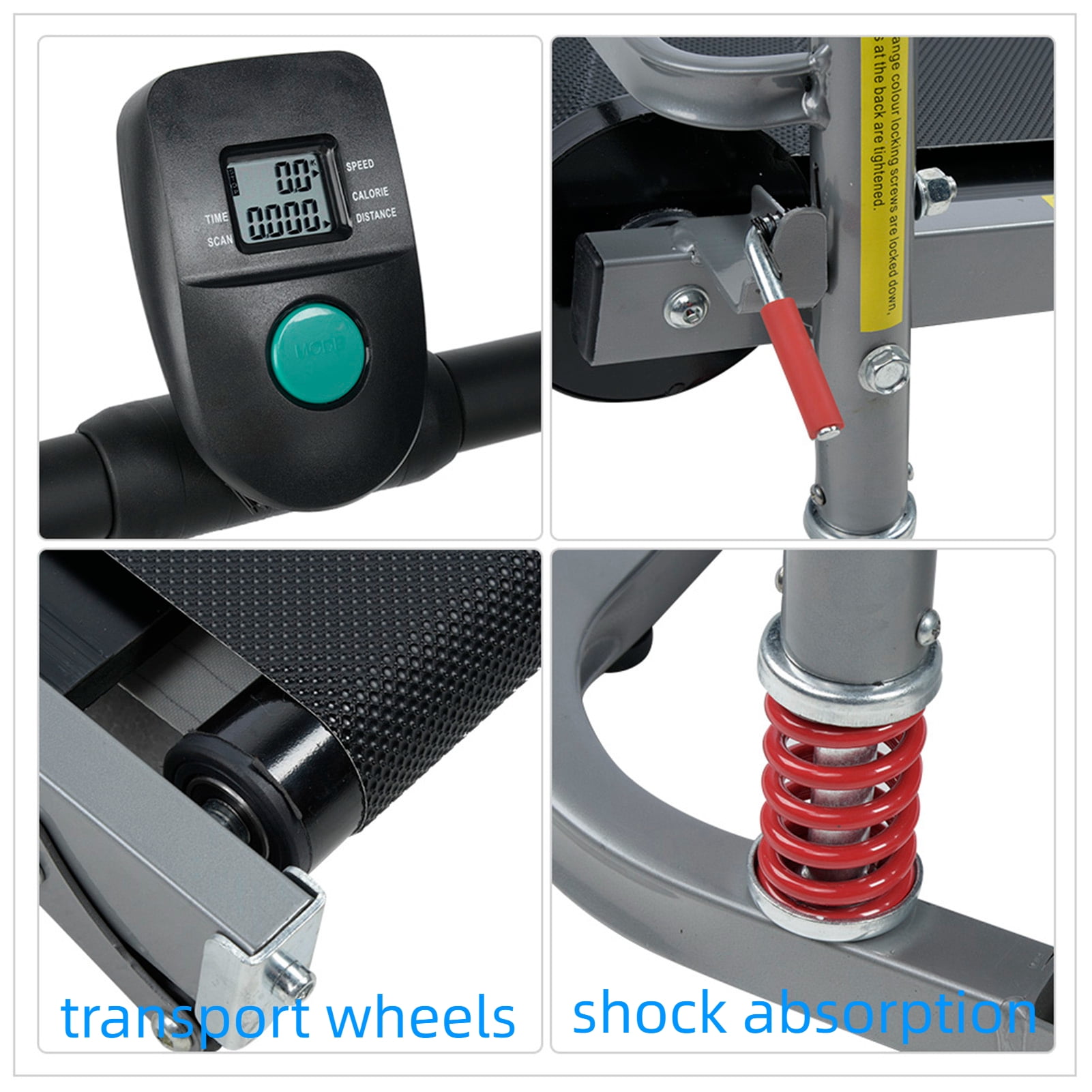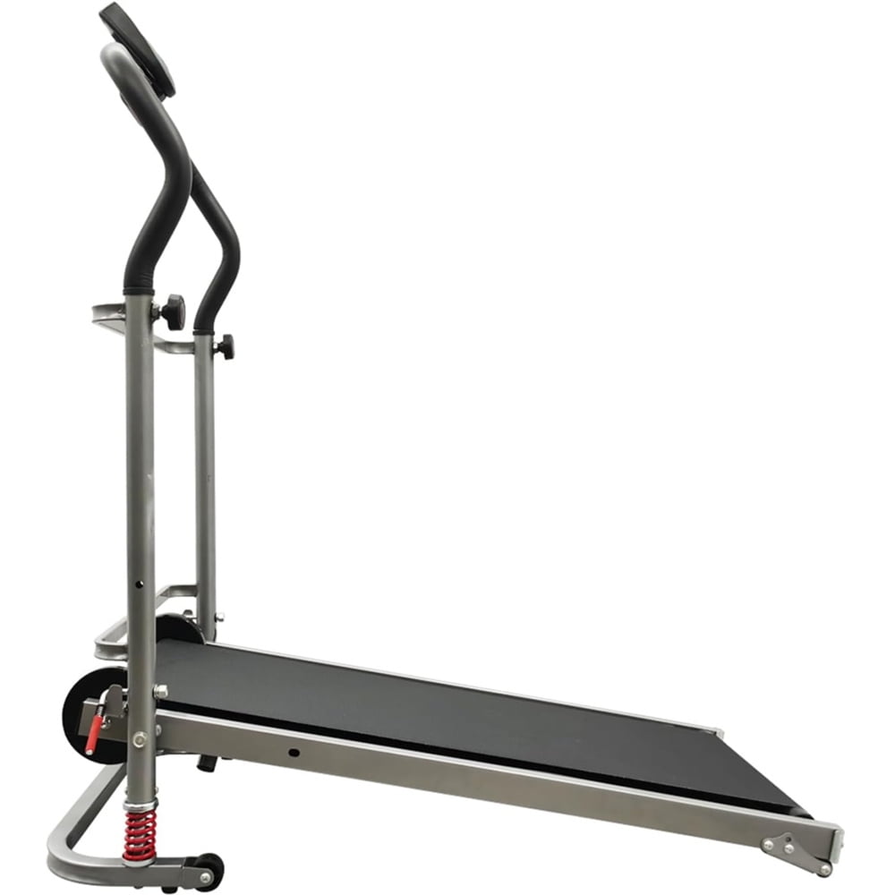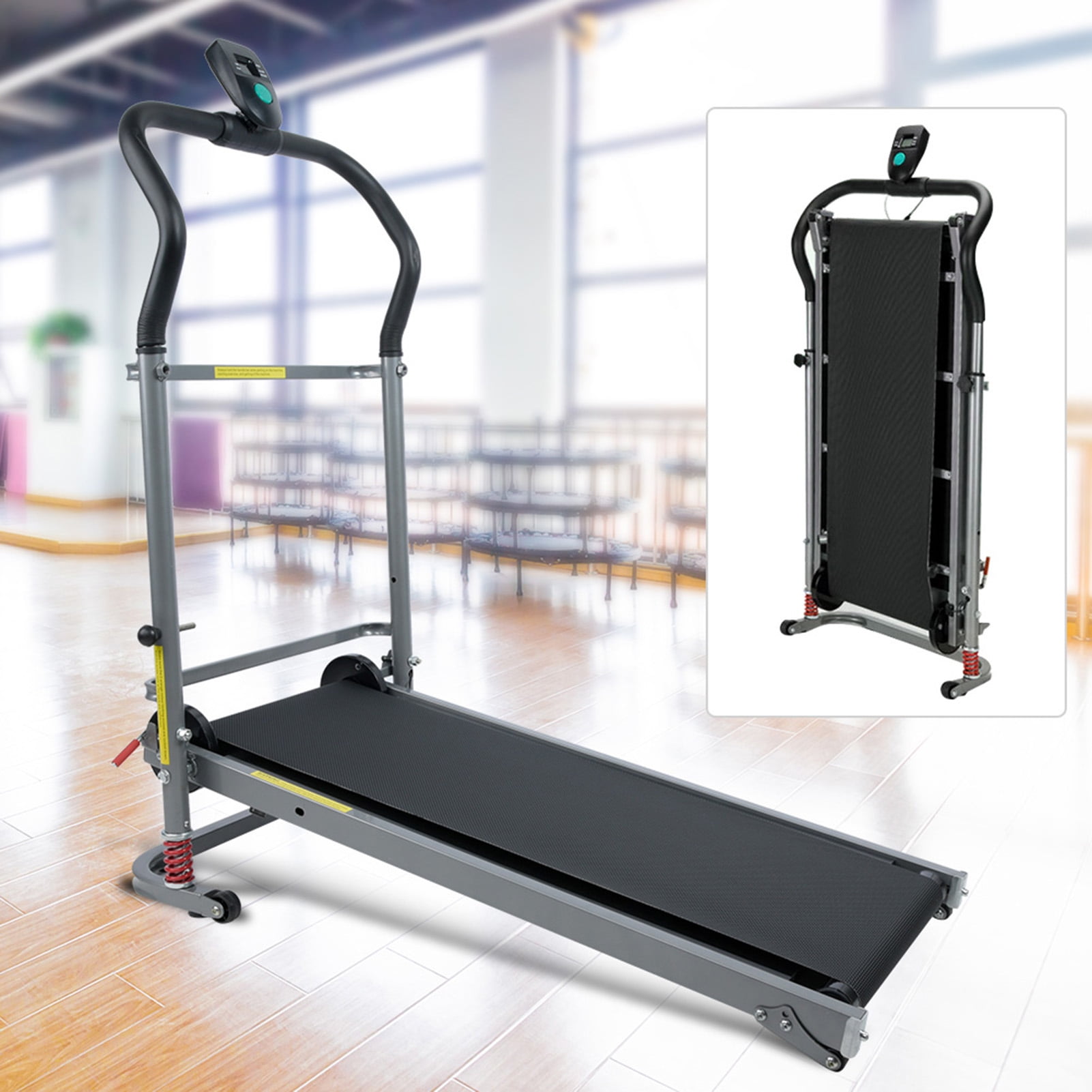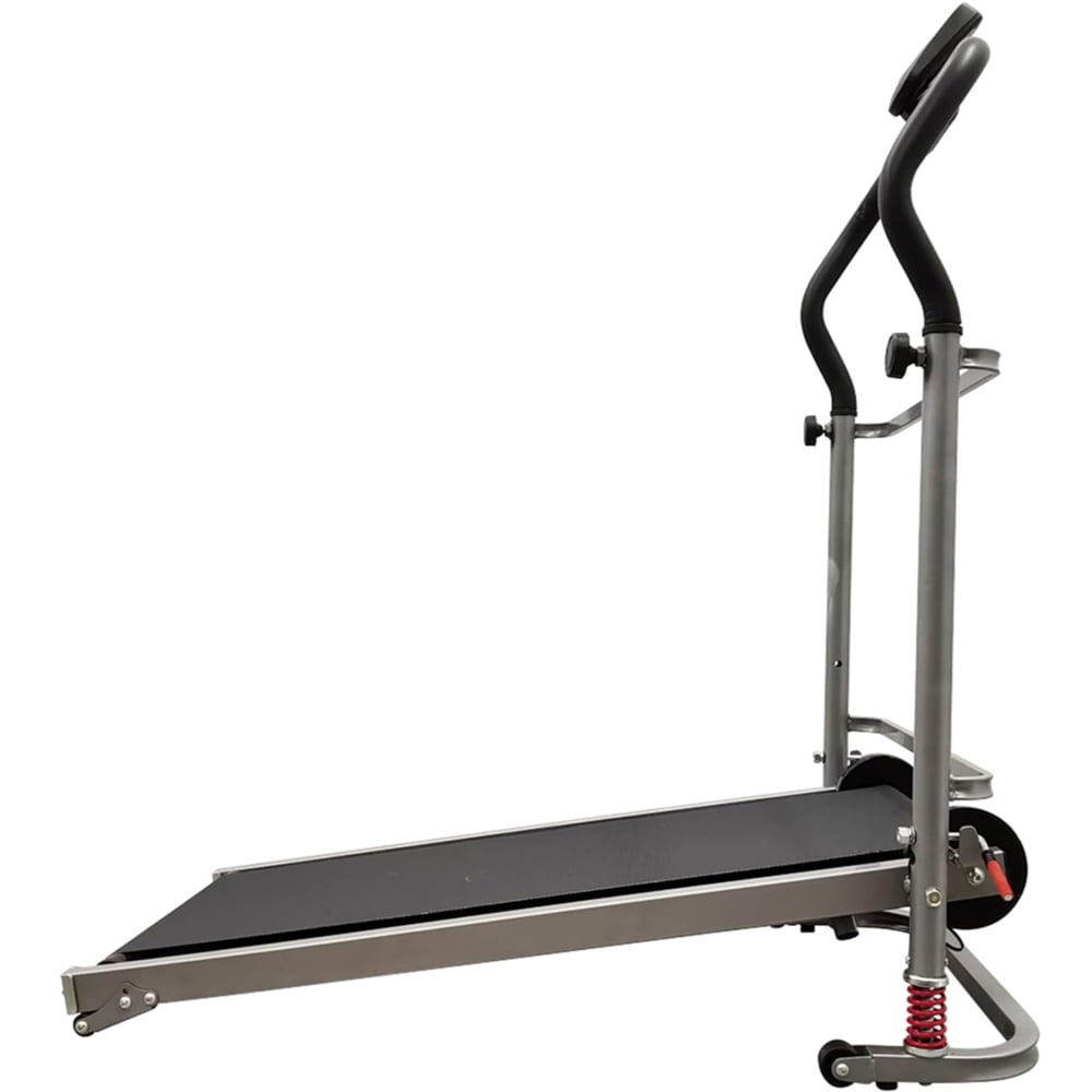 Begin your fitness journey and start walking on the manual walking treadmill. Improve health as you walk on the treadmill that requires no plugs or electricity. Simply get on and go! Hold onto the soft foam hand grips which allow you to maintain balance as you walk on the slight fixed incline. The incline helps move the treadmill as you walk while also giving you a subtle challenge during walking. The compact walking treadmill is excellent for small studios or apartments. Unfolded size: 37.4″L x 20.5″W x 48.8″H. The small treadmill with transport wheels can be easily folded and rolled away into a closet or from room to room. Folded size: 43.3″L x 20.9″W x 9.1″H. The benefits of walking include increased blood circulation, strengthening of bones and muscles, and an improvement in balance, mood, and coordination. After you complete your cardio session, simply step off using the non-slip, gripped side railings. Keep track of all your fitness progress with the digital monitor. The fitness monitor tracks time, speed, calorie burn, steps, and scan. The sturdy frame supports a maximum weight of 242 lbs. Health and wellness are just steps away with this Manual Walking Treadmill. EXCELLENT CARDIO BENEFITS This affordable treadmill will help you start your fitness journey! Walking can significantly improve mental and physical health. The compact design of the treadmill will get you into shape regardless of home size. COMPACT AND ERGONOMIC This compact, lightweight treadmill is excellent for small spaces. The running belt is 34.6″ x 13″. This treadmill is durable and can withstand power walking or light jogging. DIGITAL MONITOR Track fitness progress on the easy-to-read digital monitor. The monitor displays time, speed, distance, calories. NON-ELECTRIC This space-saving treadmill machine requires no electric outlet and remains low maintenance. Easy folding functionality and transportation wheels allow easy mobility and storage. NON-SLIP RUNNING BELT Feel safe and secure on the smooth belt. The maximum user weight is 242 lbs. Specification: Item Type: Manual Treadmill (NON-ELECTRIC) Unfolded Size: 37.4″L x 20.5″W x 48.8″H Folded Size: 43.3″L x 20.9″W x 9.1″H Running BELT Size: 34.6″ x 13″ Maximum Weight Capacity: 242 lbs Material: Steel Battery: 1 x AA Battery(Not Included) Product Weight: 36.26 lbs Digital Display: display time/distance/speed/calories burned with 2 Different Inclines: 3° and 7° Shock Absorbing design to protect your knees during exercise. The Armrest Height is Adjustable with Dual Flywheels with Transport wheels Package List: 1 x Treadmill 2 x Screw 2 x Screwdriver 2 x Latch 1 x Oil 15g 1 x Manual Note: This product is not electric, and the instrument panel does not have the battery.