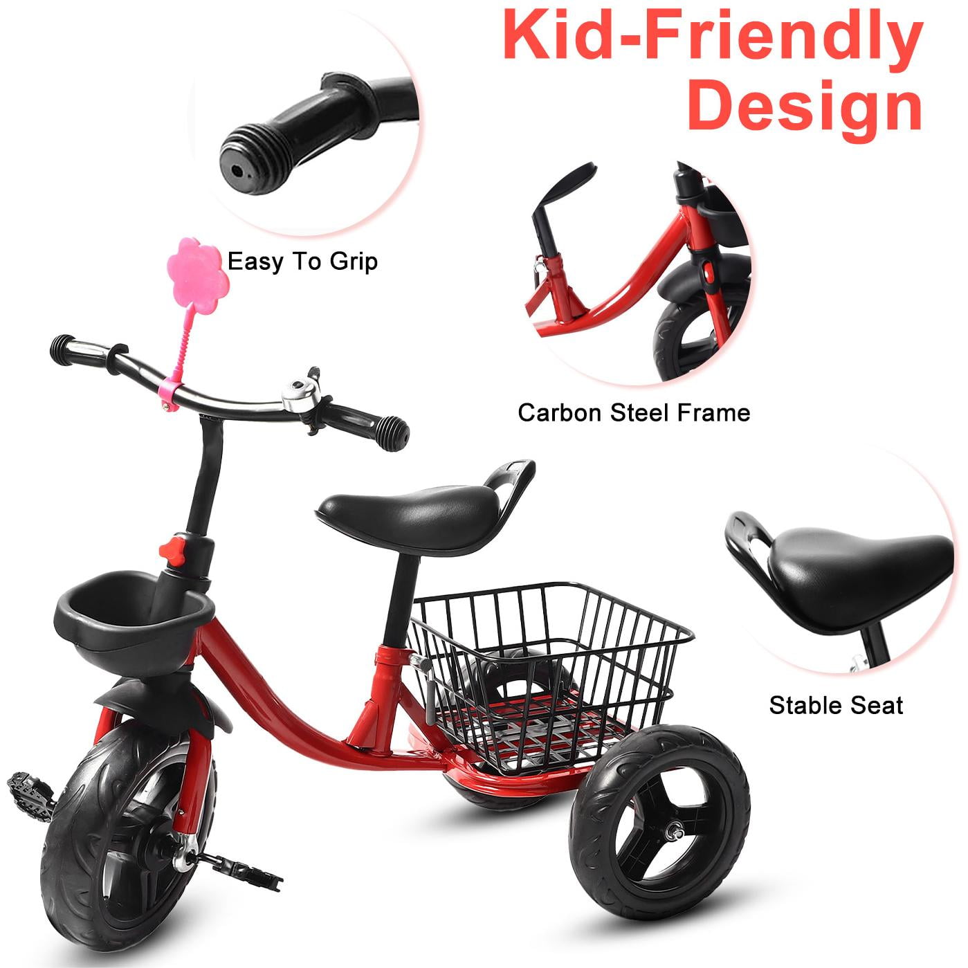 The baby trike bike comes with a convenient storage basket, so kids can bring their favorite treasures along for every ride, or find new treasures on their adventure. It’s a fun gift choice for your little ones.