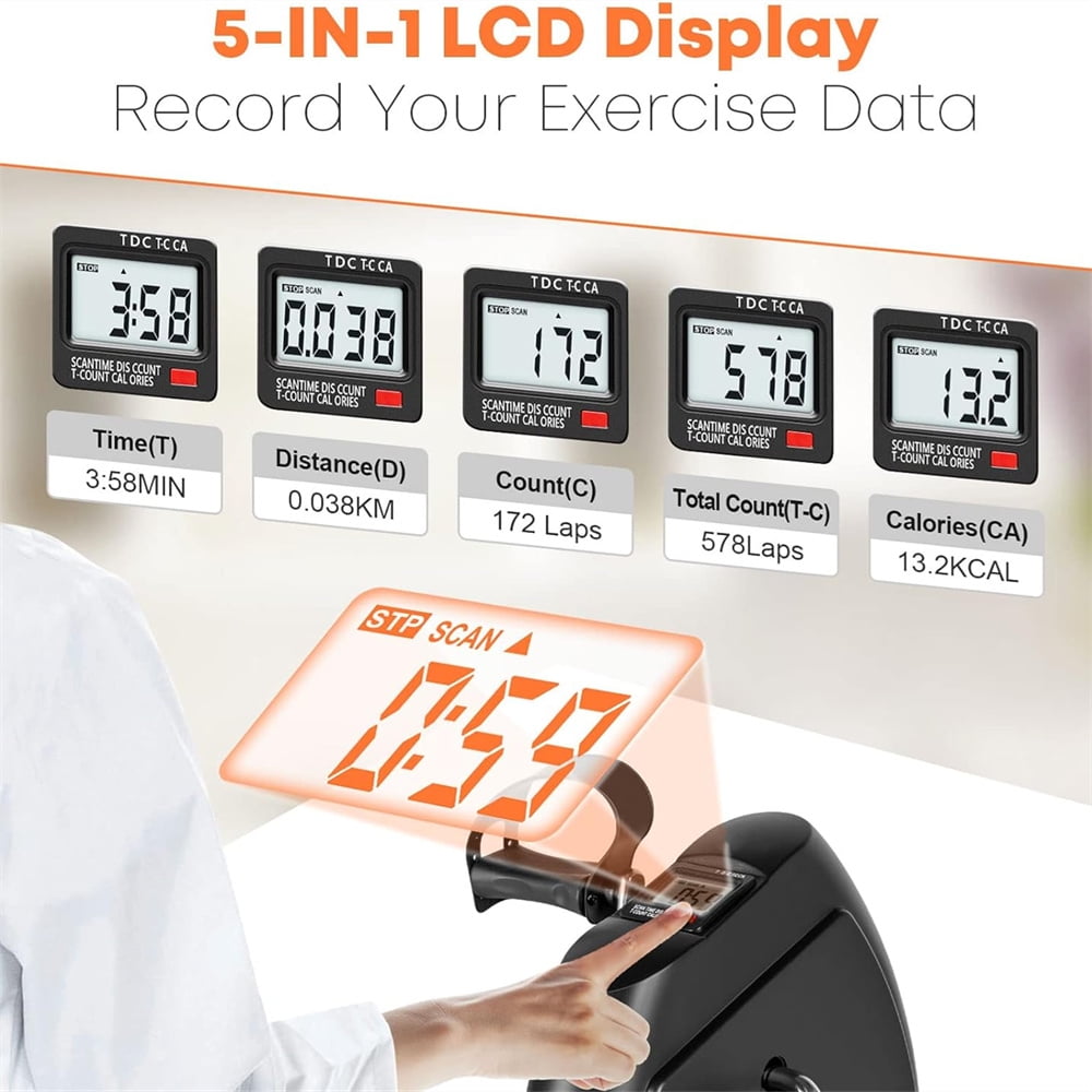 Home Pedal Exerciser – Combined with Arm & Leg exercise by adjustable multi-level resistance, this mini bike trainer can target at providing different exercising level to exercise your muscle group, upper & lower body exercises with best effect to keep fit. Adjustable Pedal Resistance – The pedal exerciser with adjustable resistance whirling, you can set different level resistance according to different groups, different exercising degree of difficulty for different exercising period. Digital Display – The multi function digital monitor displays time, count calories and distance, moreover includes a scan feature that can show all measurements in sequence, make you know your exercising journey more easily. Lightweight & Portable Design – With compact design and mini size, you can training at anywhere and anytime, such as home, office, even outside, no limited for such small body. Easy Assembly – Pedal exerciser with all supplied accessories, in few minutes and without asking for any tools. The anti-slip pedal and the non-slip bike foot provide excellent attachment and will not slip during exercise.
