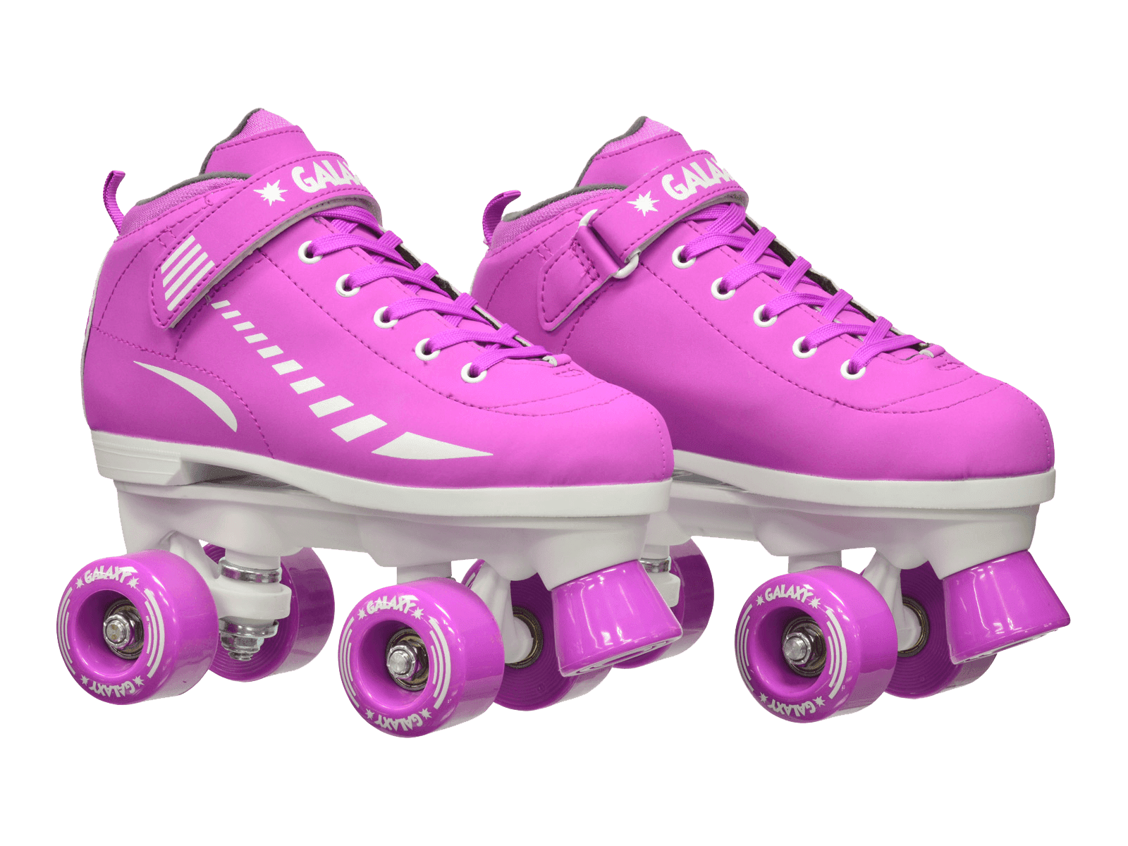 Epic Galaxy Elite Purple Quad Roller Skates are an excellent choice for a beginner skater looking for the comfort of a low top skate with the support of a high top boot. Epic Galaxy Elite skates make great kids skates thanks to an extra comfortable boot and the flexibility provided by the indoor/outdoor polyurethane quad roller skate wheels. All Epic Skates come standard with nylon plates, double action trucks, ABEC 3 Precision Speed bearing and two sets of laces!