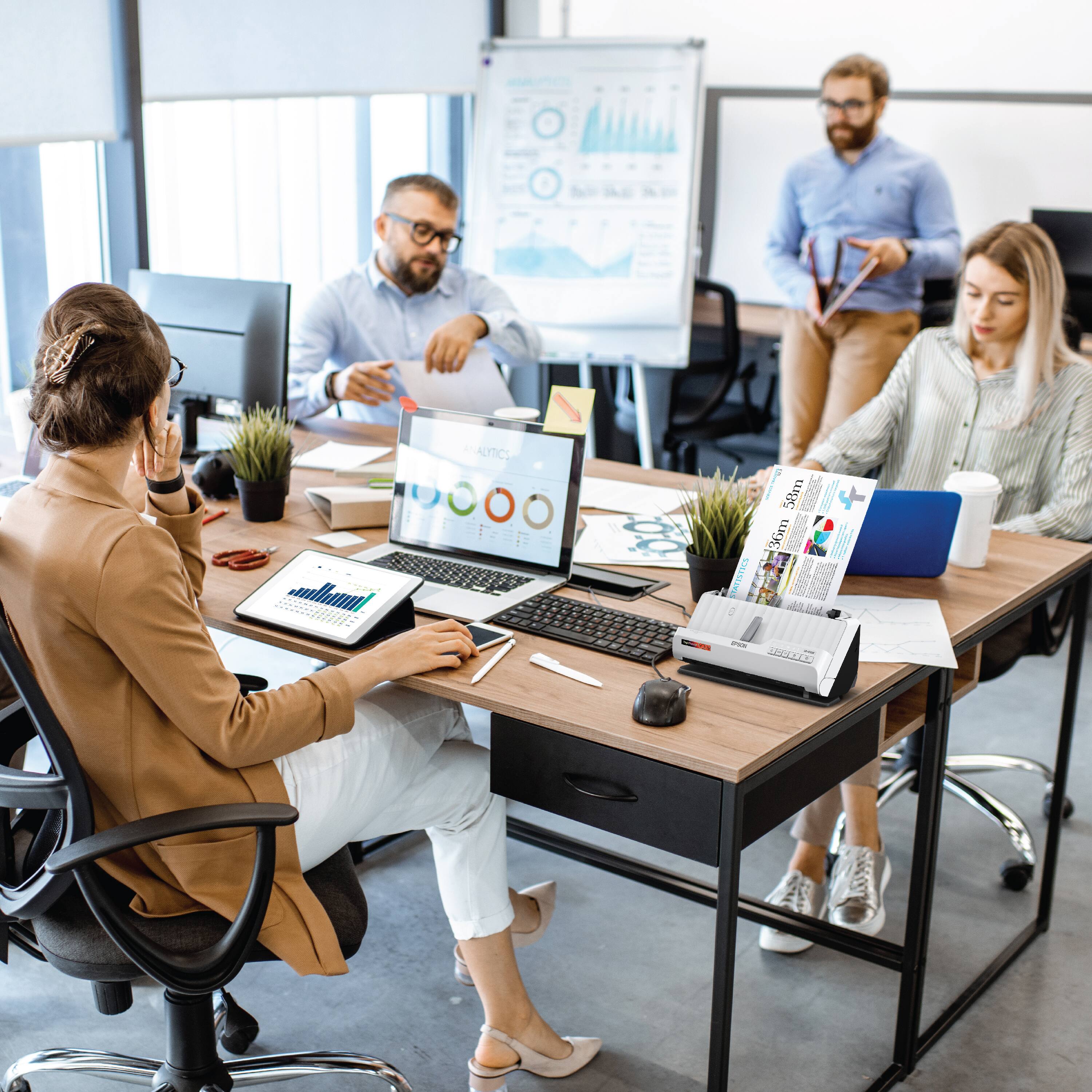 Unleash the power of AI¹ with the Epson RapidReceipt RR-400W compact desktop business scanner. Driven by Epson ScanSmart AI PRO technology, you’ll quickly and intelligently convert scanned information into smart digital data – making your documents AI-ready for Microsoft Copilot, Apple Intelligence, ChatGPT workflows and more. Going beyond simple document capture, the RapidReceipt RR-400W compact scanner utilizes an extensive data model of various invoices and receipts to quickly turn stacks of unorganized paperwork into categorized digital data that easily integrates into financial applications such as QuickBooks and TurboTax². The RapidReceipt RR-400W features a compact design that saves up to 60% of your desk space³ while helping to increase your productivity with advanced features like fast 2-sided scanning up to 30 pages per minute⁴, a 20-page Automatic Document Feeder and the ability to create searchable and editable PDFs. One of the smartest investments you can make for your business, the Epson RapidReceipt RR-400W compact business scanner, powered by ScanSmart AI PRO, enables you and your business to stay organized and efficient by unleashing the power of AI.