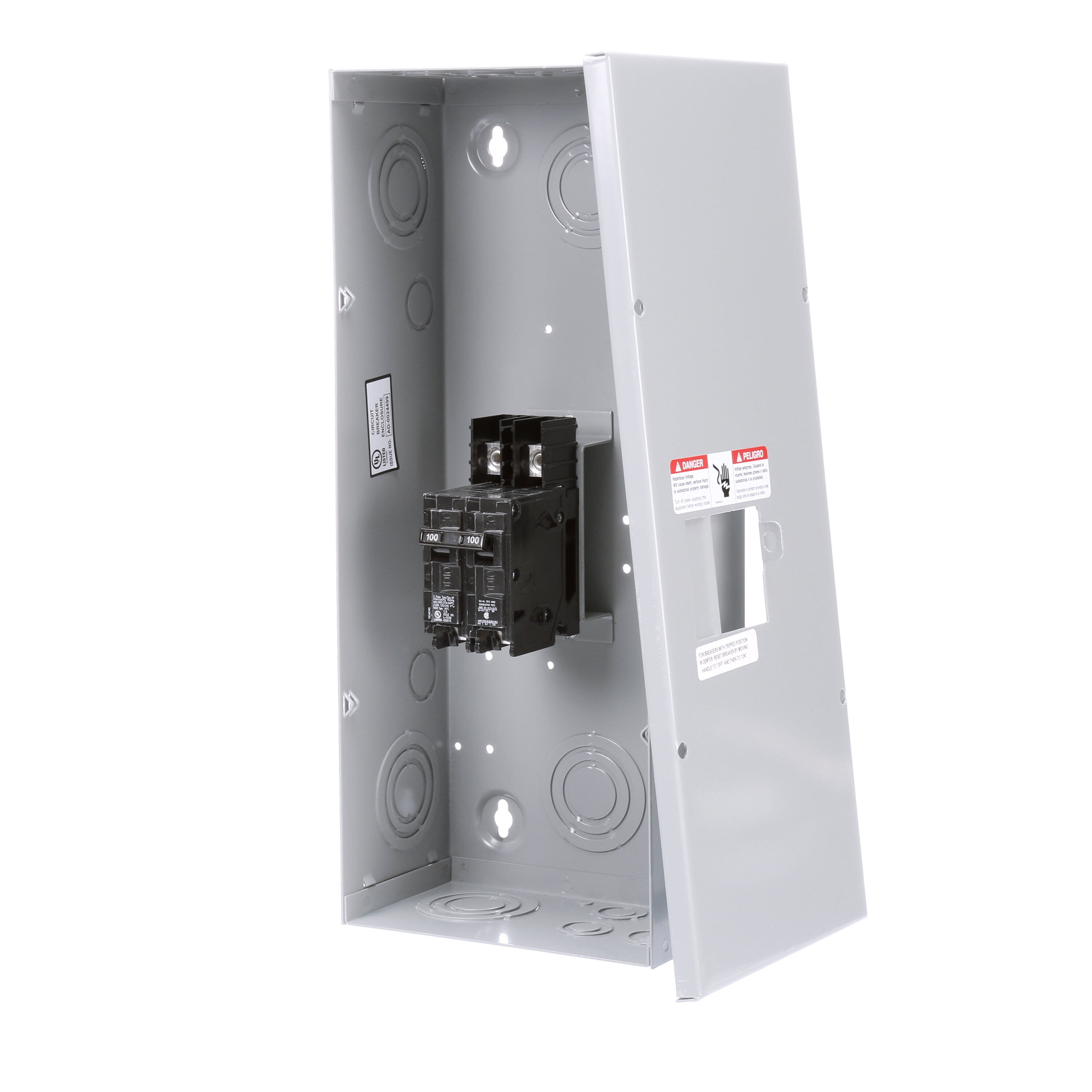 This Siemens 2-Space 2-Circuit type EQ Load Center features aluminum bus bars and is provided with a surface mount cover. Includes a factory installed 100 Amp main breaker for overload and short-circuit protection. For use indoor applications
