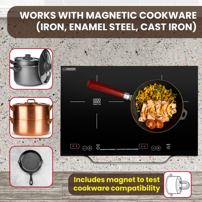- COMPATIBLE – The cooktop is compatible with most cookware that has a magnetic base, such as iron, enamel-coated steel pots and cast iron pots.
