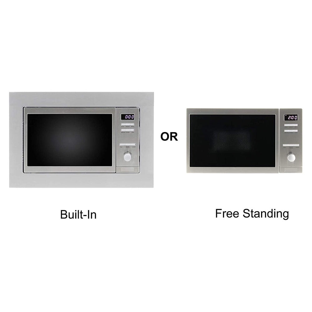 2-in-1 microwave and oven allows you to cook and heat up your favorite foods just the way you like it Pre-program button adjusts the power level and time so you don’t have to guess, just input the weight and type of food you want to cook Save your favorite settings with the memory function so you can easily heat up french fries, tater tots, and more Easy-to-use control panel allows you to select the amount of time and use the start, pause, or defrost options Switch between microwave or oven functions effortlessly for user-friendly convenience Child lock function keeps your little ones safe Glass turntable rotates food so that it is always hot and cooked thoroughly Trim kit sold separately for built-in cabinet option Voltage: 120 volts Capacity: 0.8 cubic feet Microwave Power: 800 watts Oven Power: 900 watts Material: Stainless steel Color: Gray Dimensions (D x W x H): 14.17 x 18.5 x 11.1 inches Weight: 118 pounds