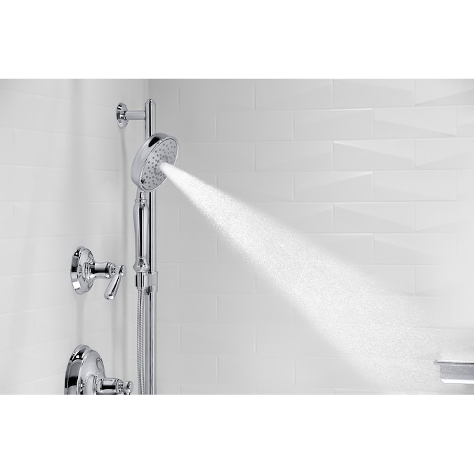Inspired by the elegance of early 1900s American design, this Bancroft multifunction handshower provides three distinct sprays – full coverage, pulsating massage, or silk spray – all enhanced with Katalyst technology for a completely indulgent showering experience. By infusing two liters of air per minute, Katalyst delivers a powerful, voluptuous spray that clings to the body with larger, fuller water drops.