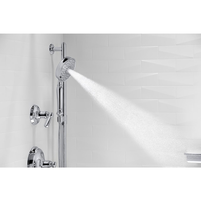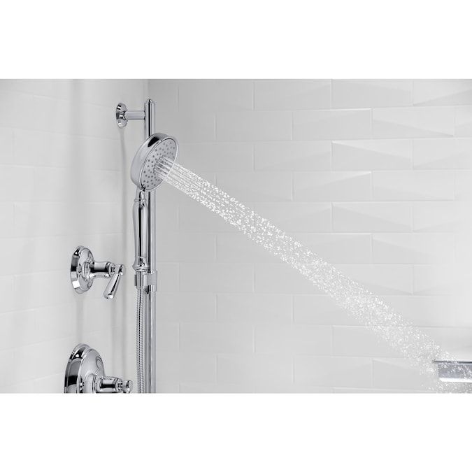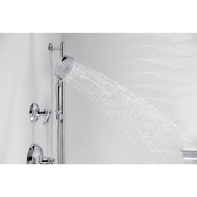 Inspired by the elegance of early 1900s American design, this Bancroft multifunction handshower provides three distinct sprays – full coverage, pulsating massage, or silk spray – all enhanced with Katalyst technology for a completely indulgent showering experience. By infusing two liters of air per minute, Katalyst delivers a powerful, voluptuous spray that clings to the body with larger, fuller water drops.