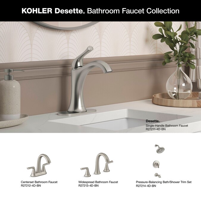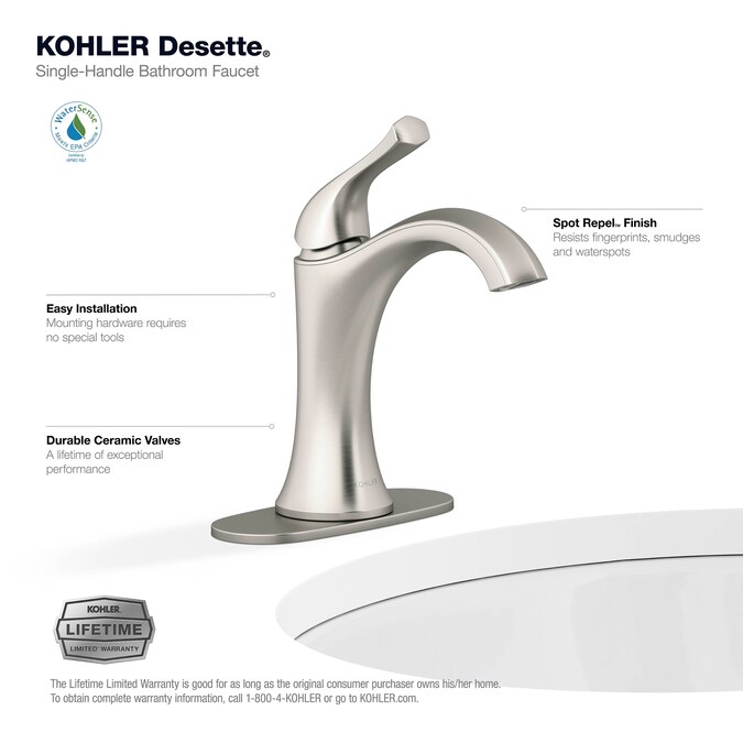 With its soft-angled curves and pronounced handle design, the Desette single-handle bathroom sink faucet will bring a modern flair to your bathroom sink. The faucet has a single lever handle for simple volume and temperature control. The straightforward installation and premium materials will allow you to easily install a beautiful and durable faucet.
