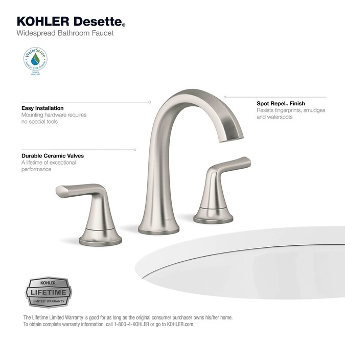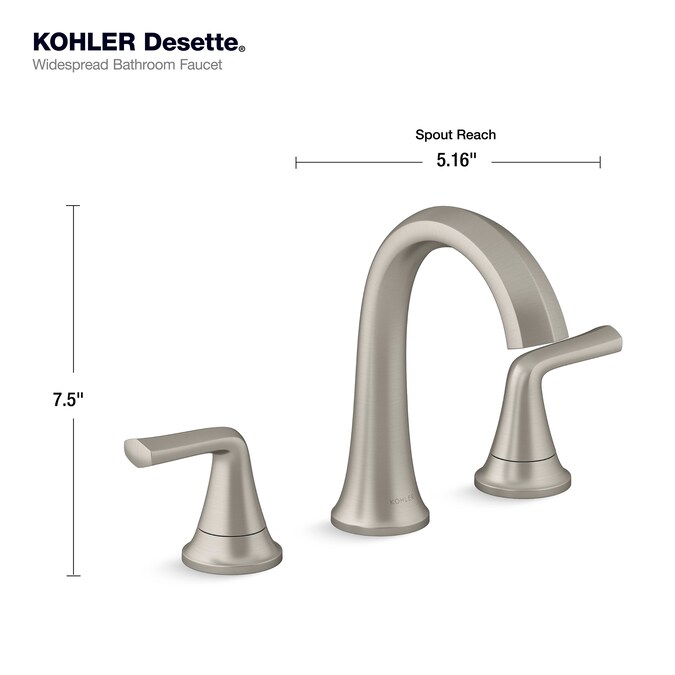 With its soft-angled curves and pronounced handle design, the Desette widespread bathroom sink faucet will bring a modern flair to your bathroom sink. The faucet has two lever handles for separate control of hot and cold water. The straightforward installation and premium materials will allow you to easily install a beautiful and durable faucet.