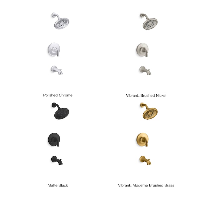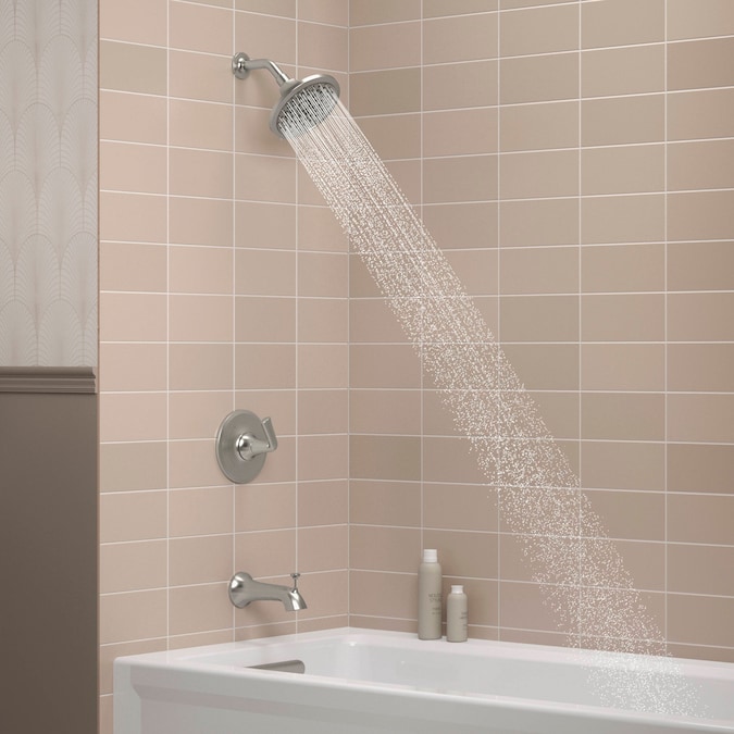 - Box includes: Showerhead, shower arm and flange, faceplate with lever handle, diverter spout with slip-fit connection, and Rite-Temp® pressure-balancing valve with universal 1/2″ NPT male connections