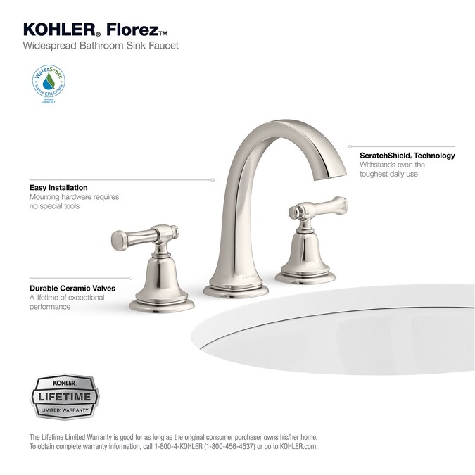 By combining a modern profile with classical decorative details, this Florez widespread bathroom sink faucet delivers a flawless blend of elegance and artistry to your bathroom space. It complements many bathroom designs and coordinates with other products in the Florez bathroom collection. With ER®, it’s easy to find the design solution that’s right for you.