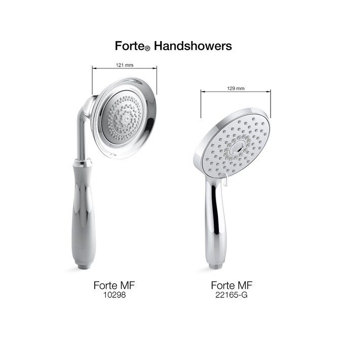 Enjoy luxurious showering combined with up to 30 percent water savings. This Forte 1.75-gpm handshower provides three distinct sprays – full coverage, pulsating massage, or silk spray – all enhanced with Katalyst technology for a completely indulgent showering experience. By infusing two liters of air per minute, Katalyst delivers a powerful, voluptuous spray that clings to the body with larger, fuller water drops.