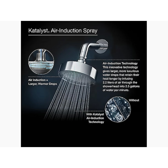 This Purist single-function showerhead brings innovation to your bathroom with Katalyst, a cutting-edge technology that intensifies the flow of water for a completely indulgent showering experience. With a new nozzle pattern, internal waterway design, and air-induction system, this technology maximizes every water drop and creates a richer, more intense flow of water that heightens the shower’s sensory experience. By infusing two liters of air per minute, Katalyst delivers a powerful, voluptuous spray that clings to the body with larger, fuller water drops.