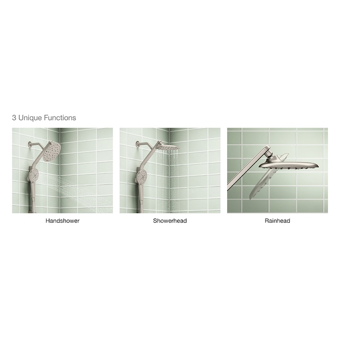 - Can be used as a showerhead/rainhead or a handshower with a simple push of a button