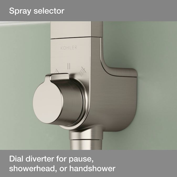 - Diverter positioned at the base of the column makes for easy toggling between the handshower and showerhead