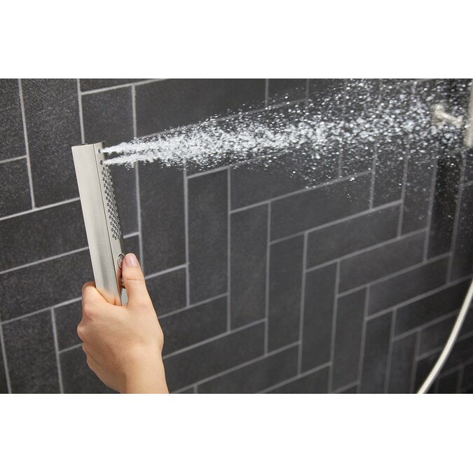 The clean contemporary look of the Shift+ Square handshower complements a wide variety of style lines. Two spray options give you a personalized water experience, allowing you to target specific areas with a concentrated massage or full-coverage setting. This Shift model also features a lower flow rate for conserving water without compromising performance.